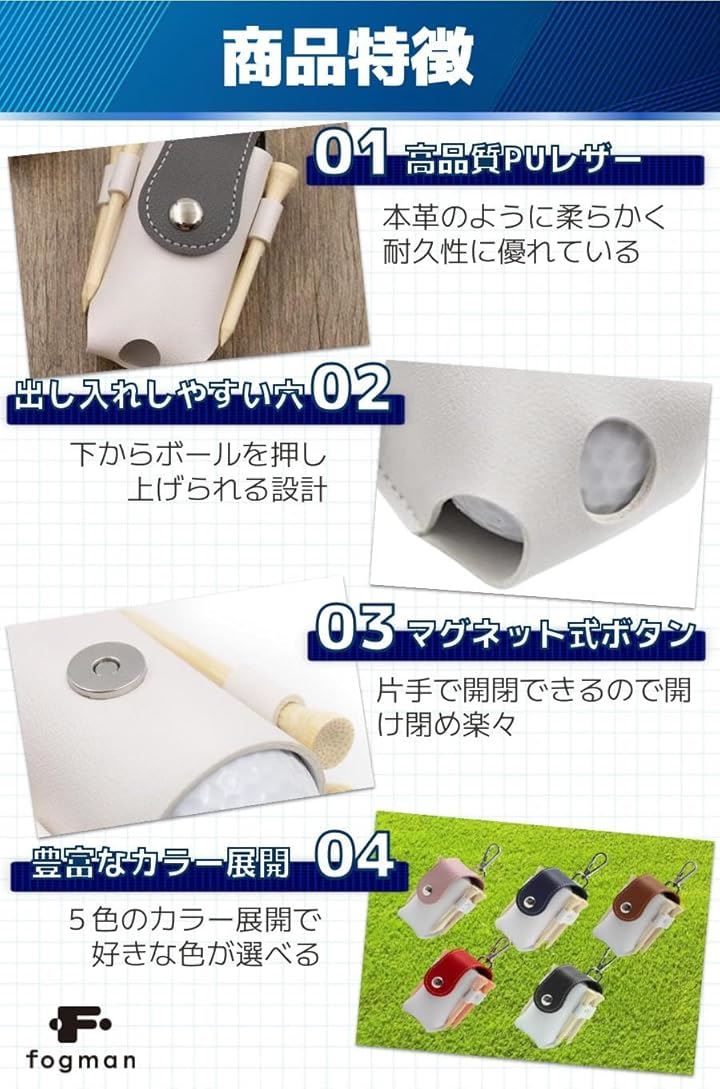 ゴルフボールケース メンズ レディース おしゃれ かわいい カラー 軽量 PUレザー