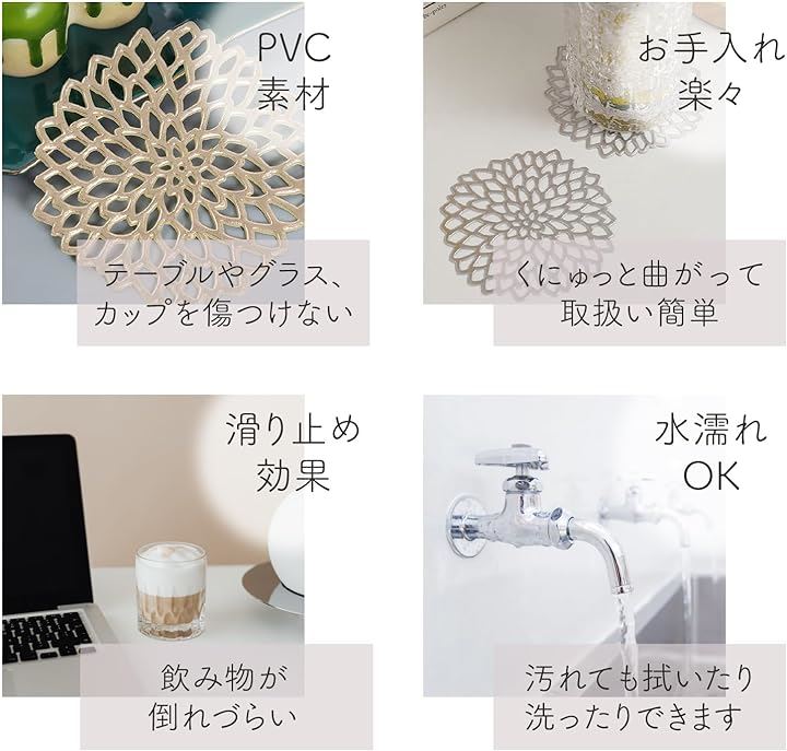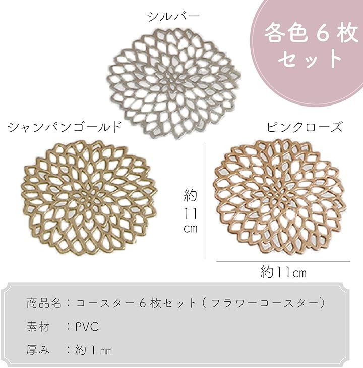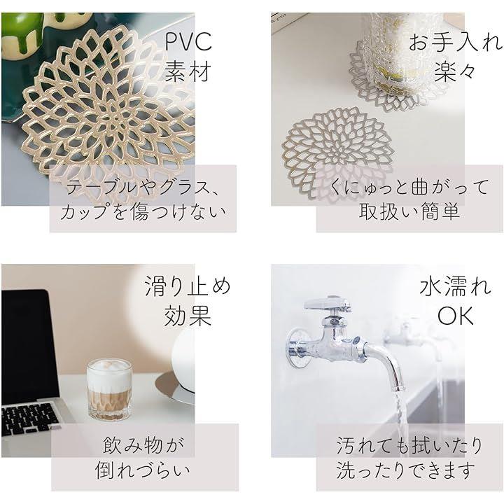 母の日 コースター 6枚セット コップ敷き コップ受け グラスマット PVC ダリア 花柄 洗える 北欧