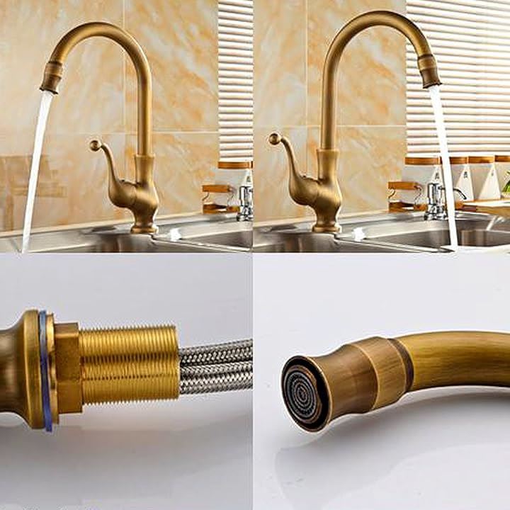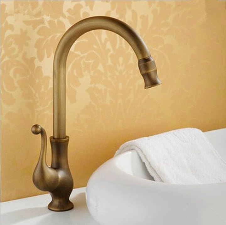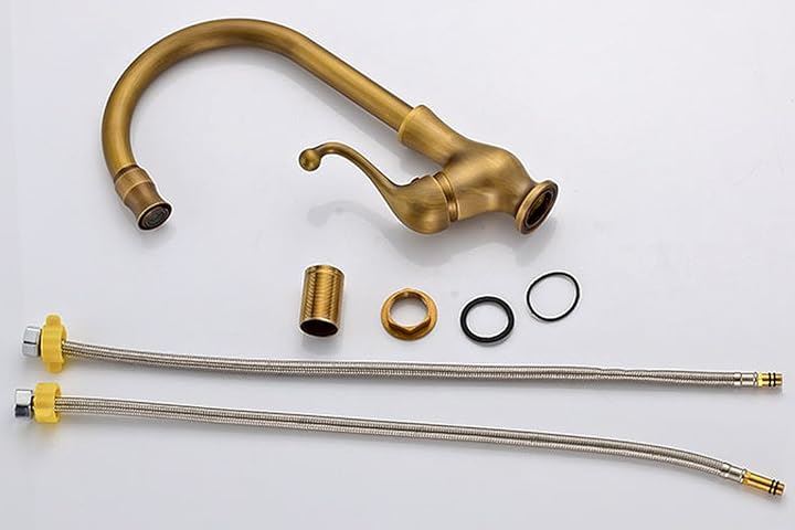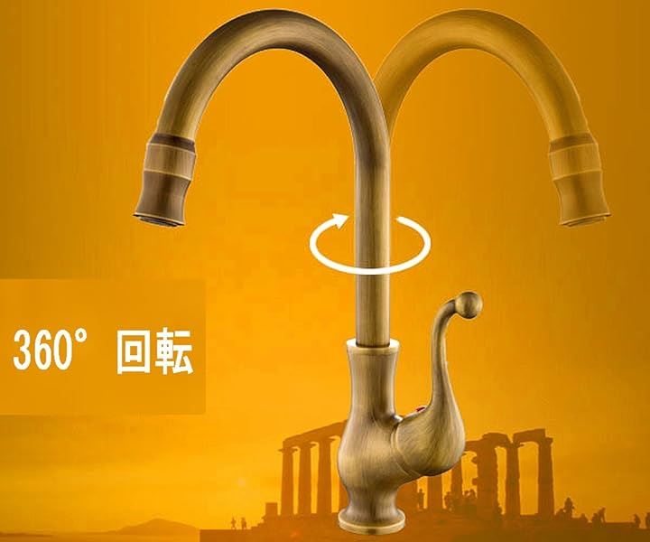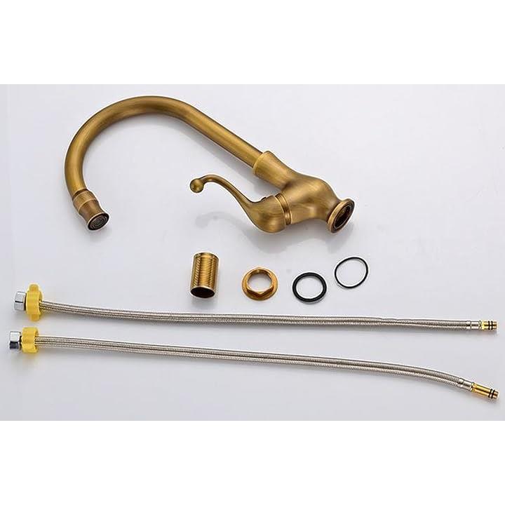 キッチン 洗面用 アンティーク 混合水栓 手洗いボウル グースネック スワン 蛇口 クラシック シングルレバー 洗面台 取り付けホース付き SK2