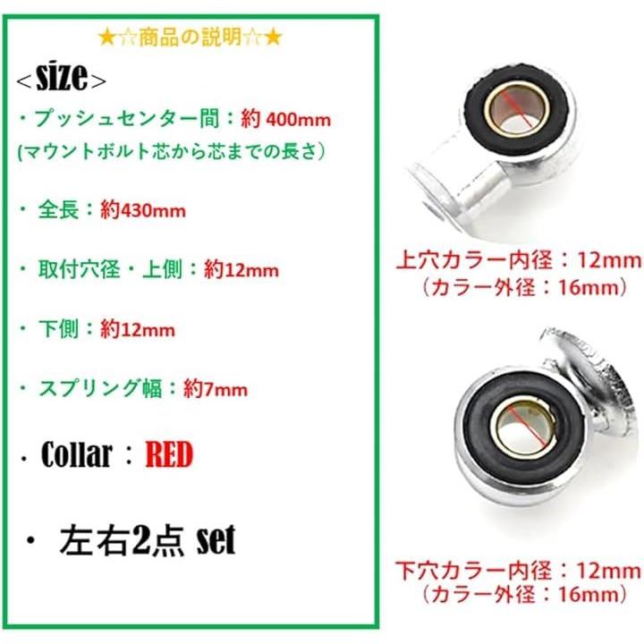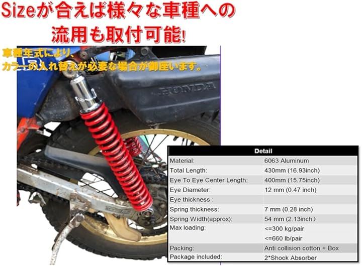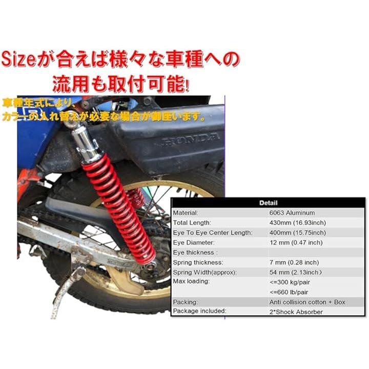 互換品 リア ショック スプリング サスペンション 400MM 7MM スズキ 用 ホンダ ヤマハ カワサキ バイク モーター サイクル エアショック アブソーバー カラー レッド 汎用 社外品