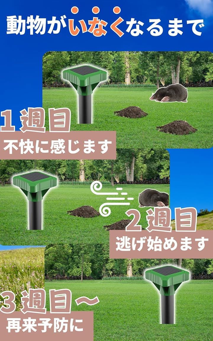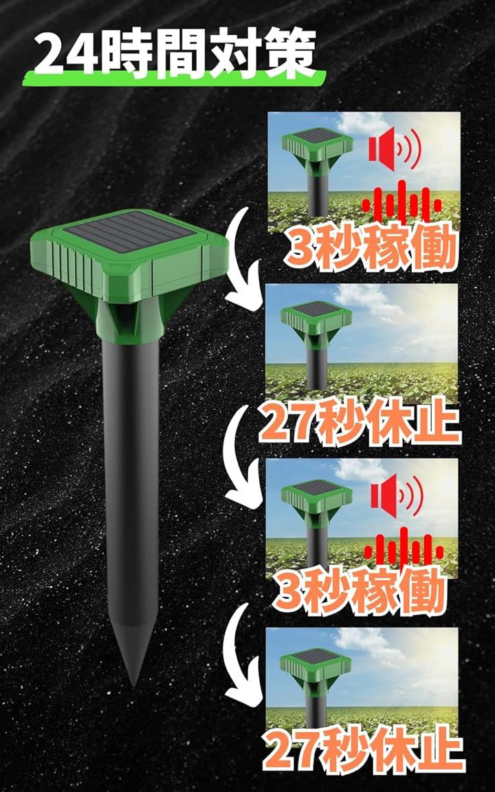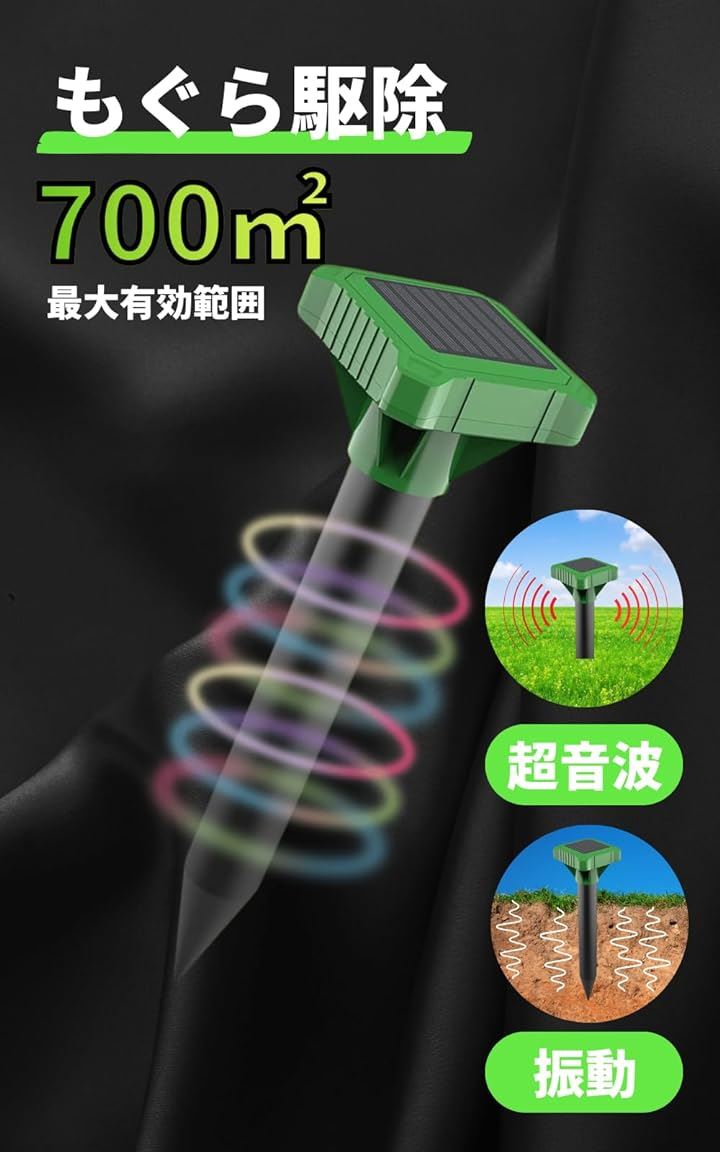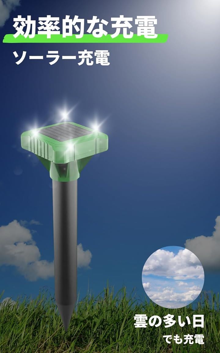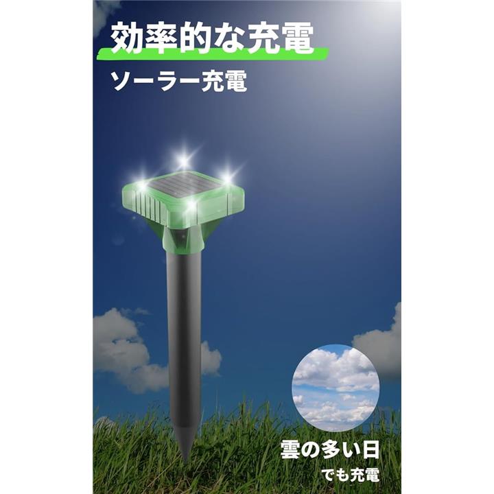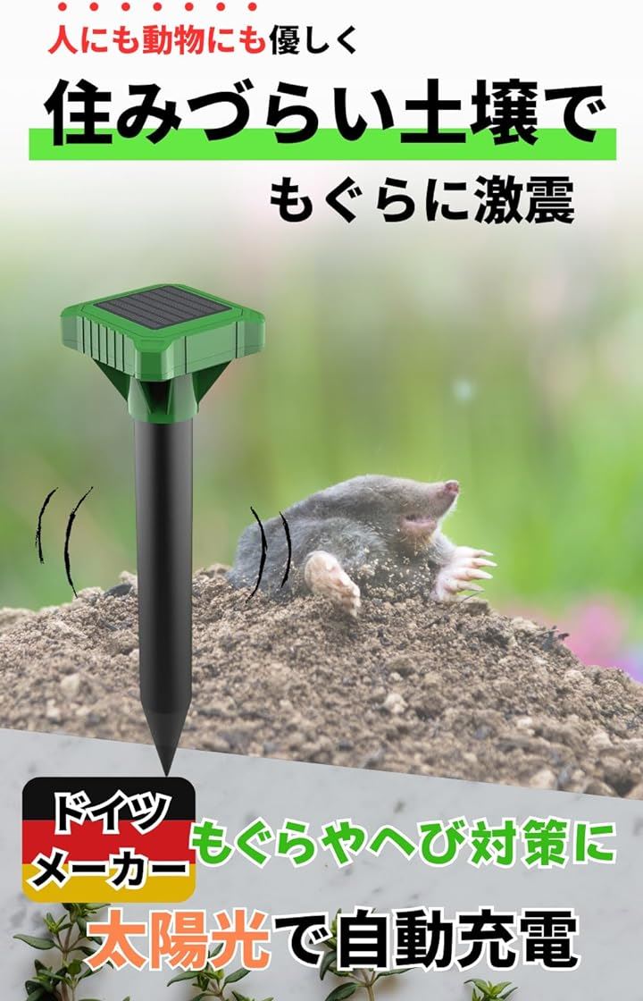 もぐら退治 ソーラー充電式 超音波と振動で撃退 畑や菜園 庭園などに最適 ハタネズミやヘビなど穴を掘る動物に 2個入