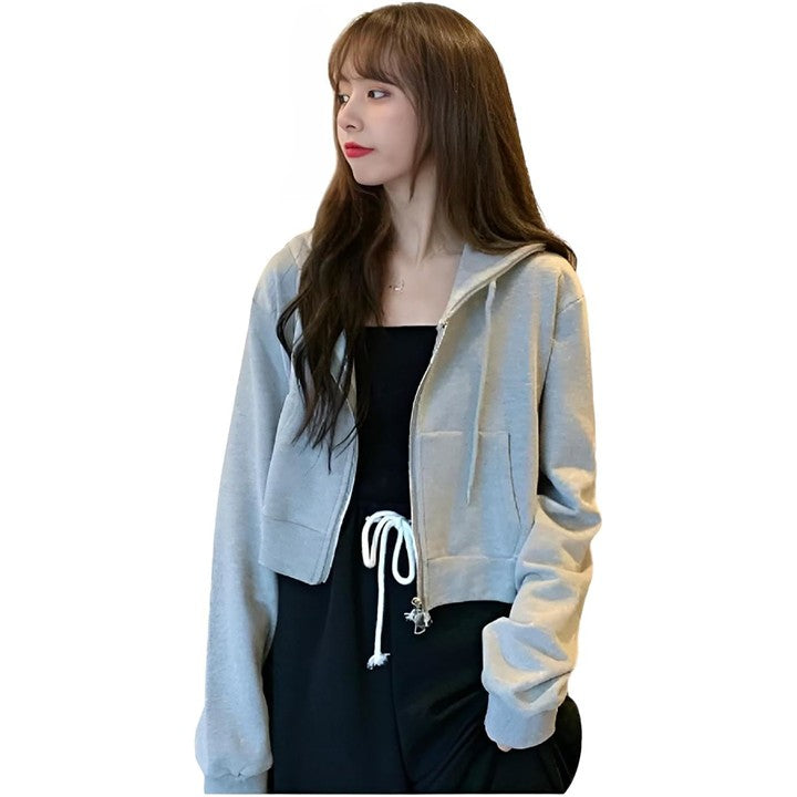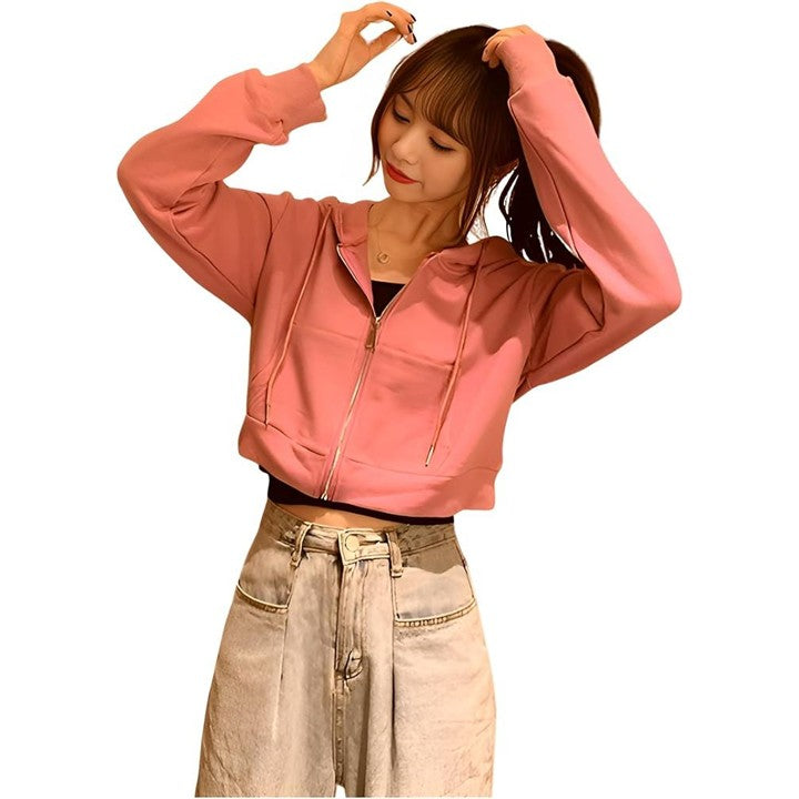 *「人気のへそ出しショート丈フード付きパーカーは、カジュアルでおしゃれなスタイルを叶える魅力的な必須アイテム。」ショート丈のデザインは、ラフなスタイリングが好きな方や韓国トレンド感を取り入れたい方にぴったりです。