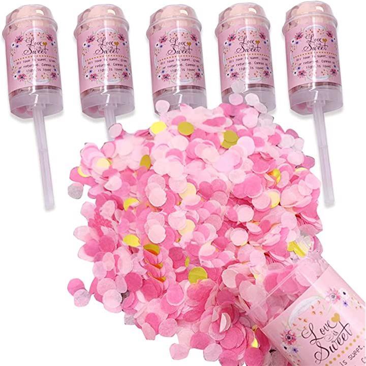 パーティーを盛り上げるクラッカー プッシュ式 紙吹雪 ピンクお得な6個セット:結婚式や誕生日、パーティー、イベントなどさまざまなシーンの雰囲気をより楽しく盛り上げるかわいいパーティークラッカー フラワーシャワーのセットです。