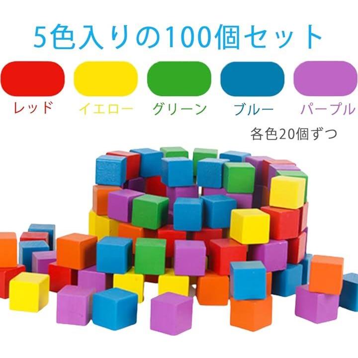 積み木 立方体 木製 キューブ 小学生 算数 色付き 小さい 100個セット