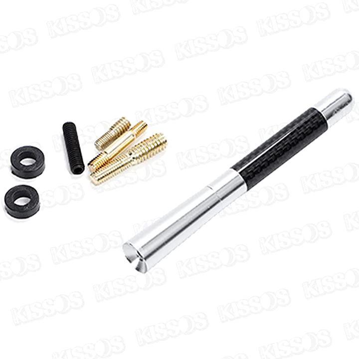互換品車用 ショート アンテナ ルーフ カーボン調 12cm アルミ 汎用 アダプタ スペーサー 付属