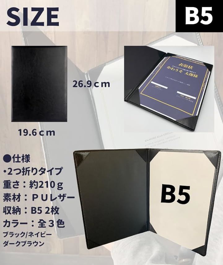 かわうそdeカバー 証書ホルダー b5 ファイル メニュー 二つ折 PUレザー 2枚収納