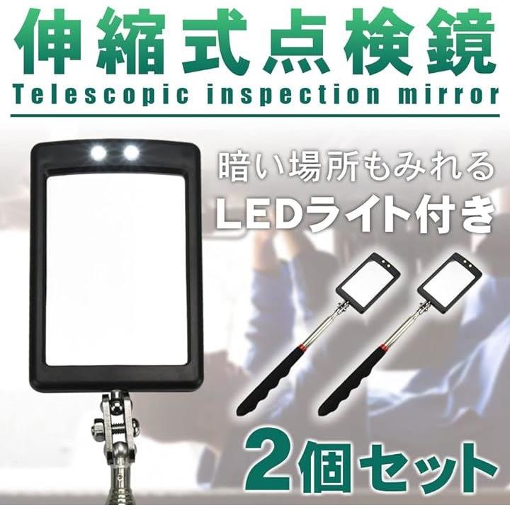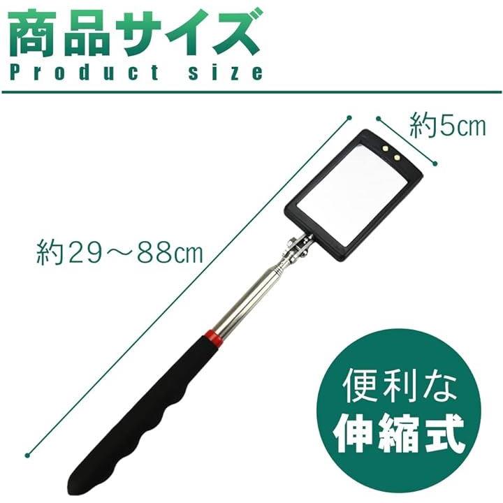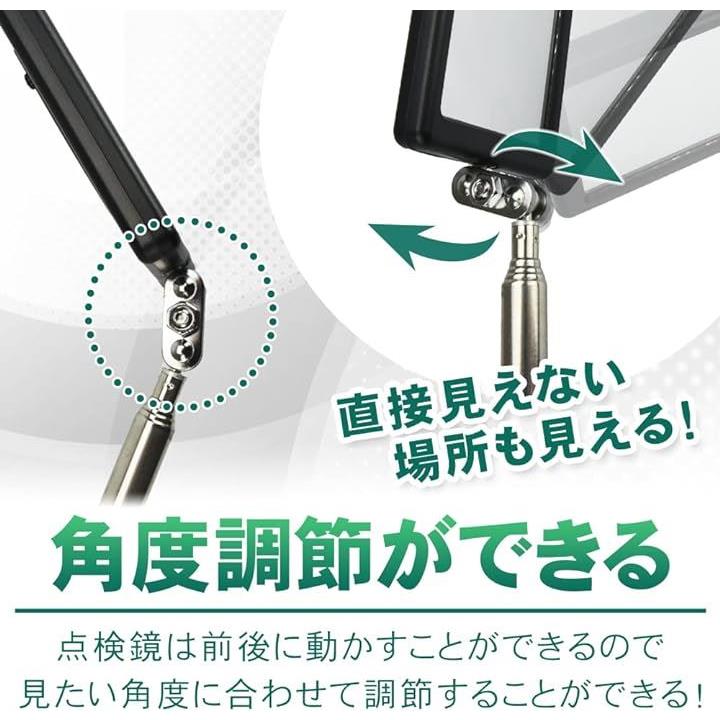 伸縮式点検鏡 棒付きミラー 点検ミラー 角度調整可能 LEDライト付き 握りやすい 施工 修理