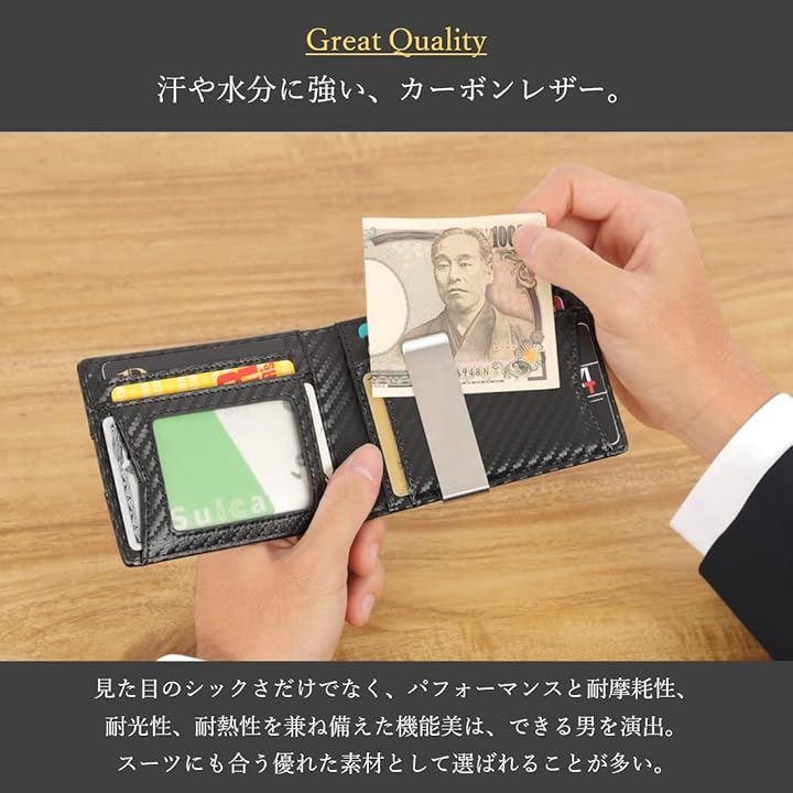 小銭入れ不要な方へ マネークリップ メンズ カードケース パスケース 定期入れ 2つ折り 二つ折り 財布 uy22