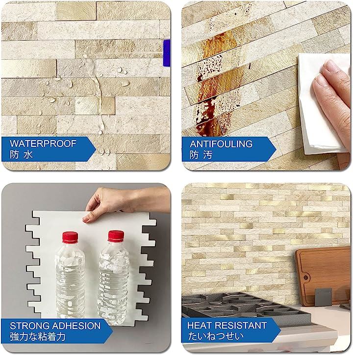 MOFIT 3d タイルシール キッチンタイル、大理石調タイルシール タイルシート トイレ 壁シート キッチンパネル 洗面所 防水