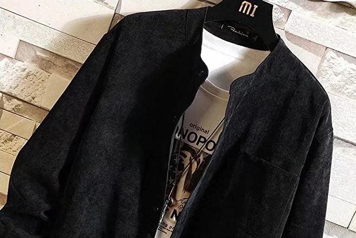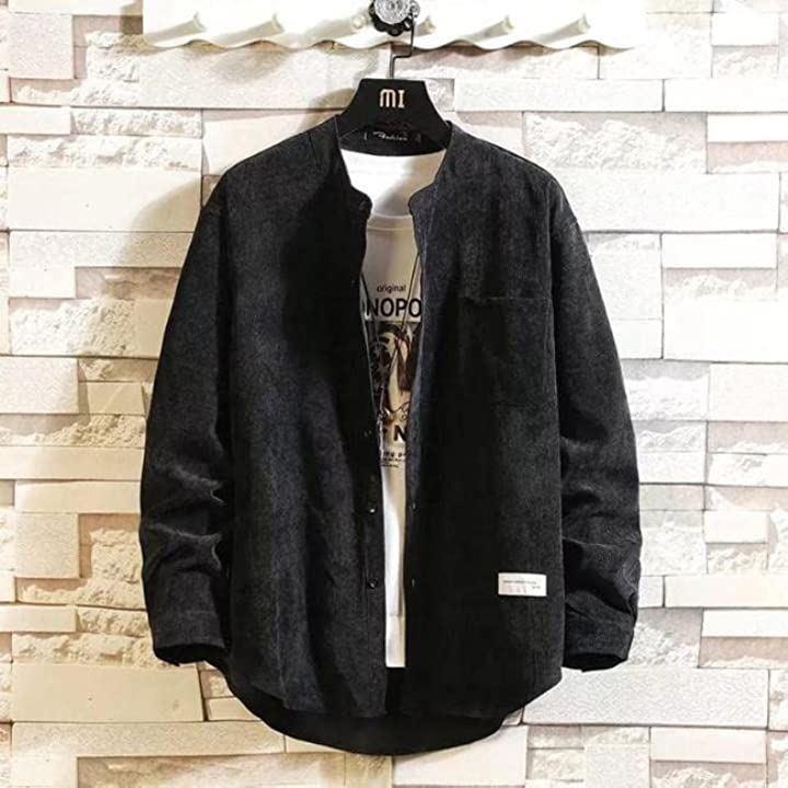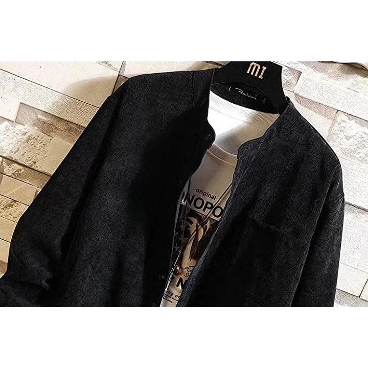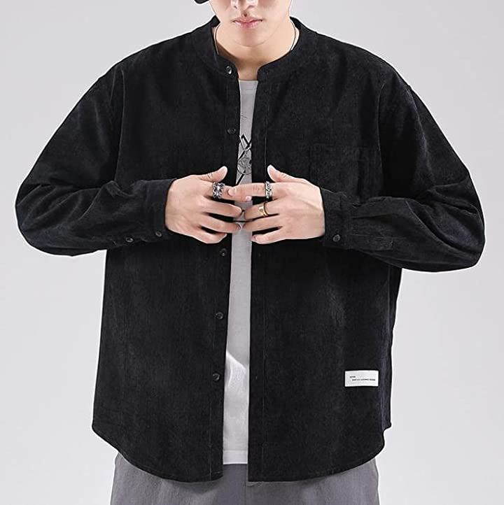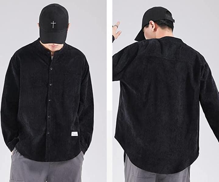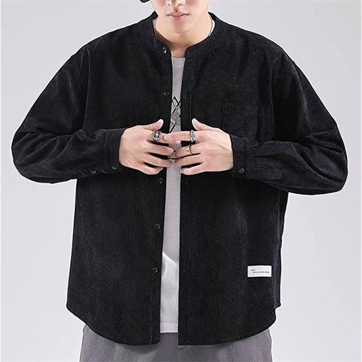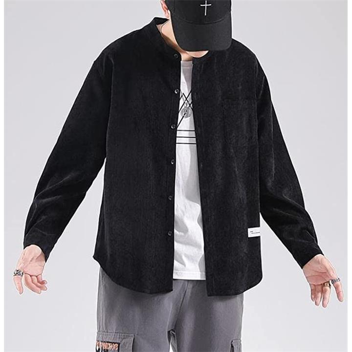 エンプティオ スタンドカラー 長袖 ボタンダウン シャツ フォーマル メンズ オーバーサイズ ブラック
