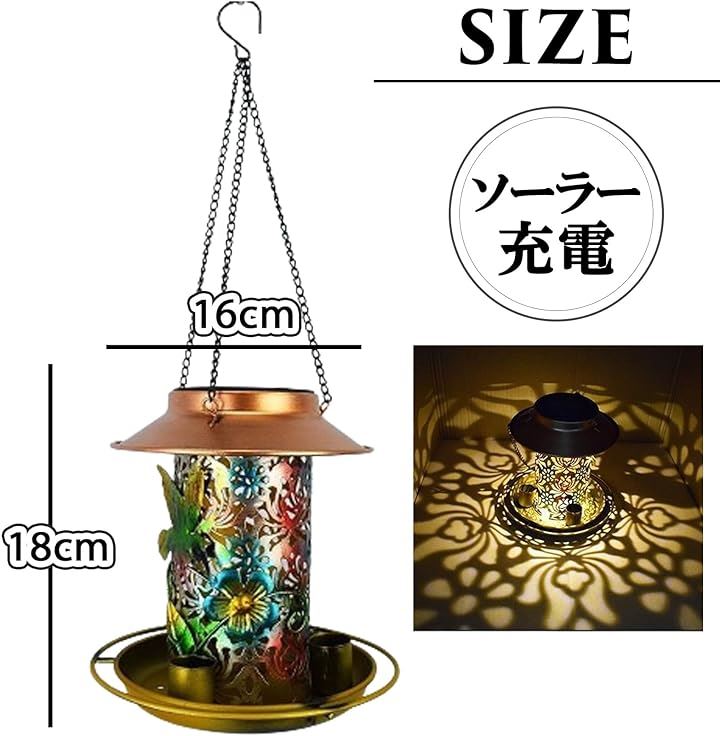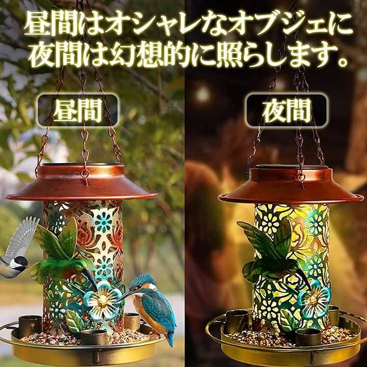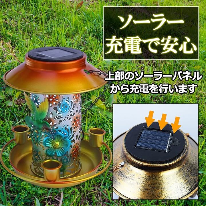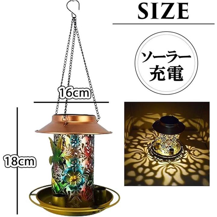 ガーデンライト バードフィーダー ソーラー 屋外 防水 鳥 餌入れ LED ランタン
