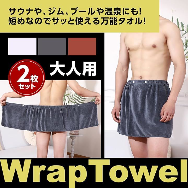 ラップタオル サウナタオル 2枚セット 大人用 スカートタオル シャワー スポーツ ジム プール 着替え サイズ調整可能