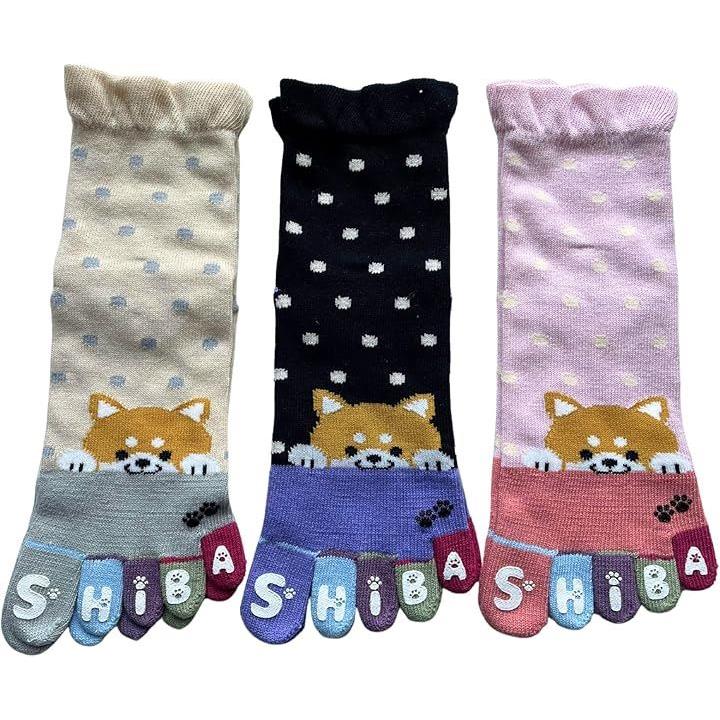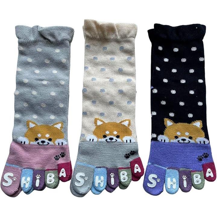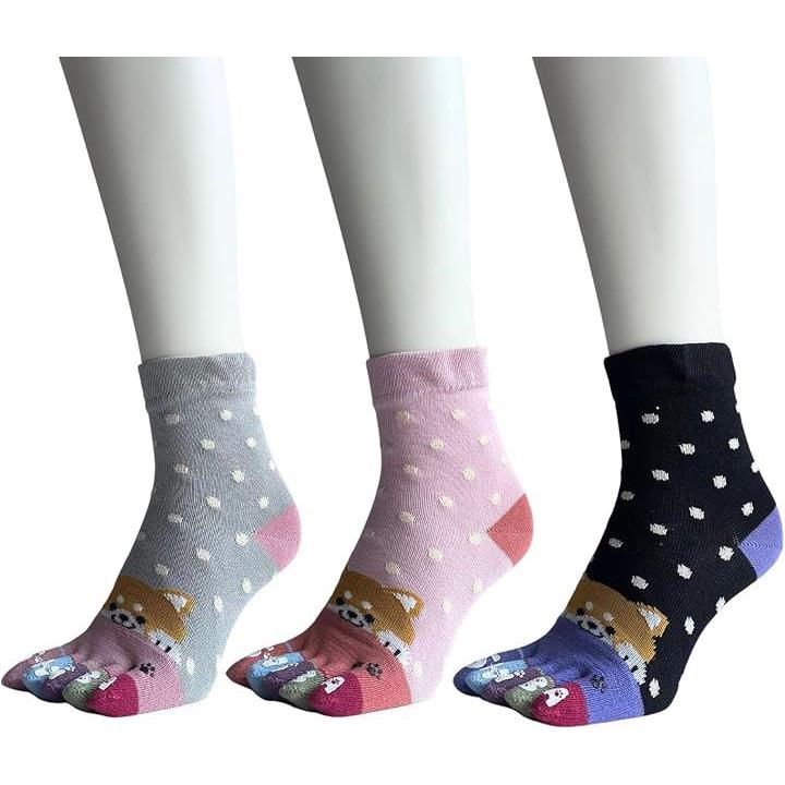 5本指ソックス レディース 表糸綿100% 3足 5本指靴下 可愛い 動物柄 ゆったり 口ゴム 親指補強 3足セット 色はお任せ