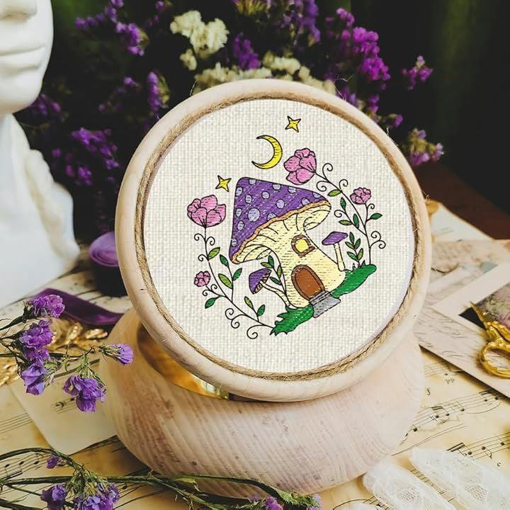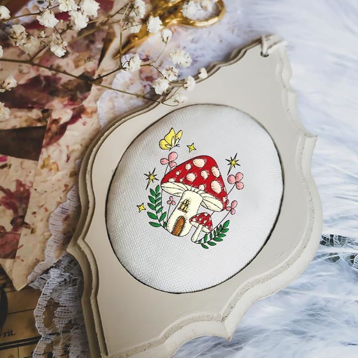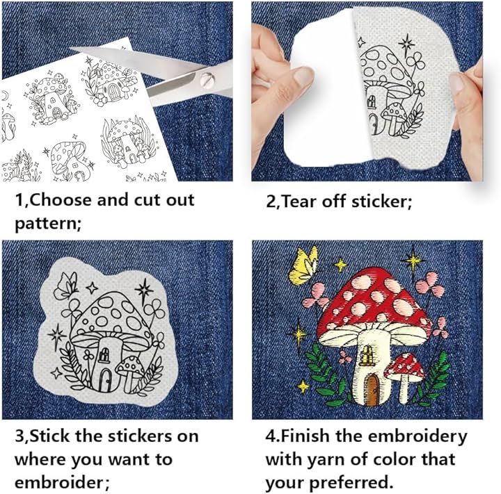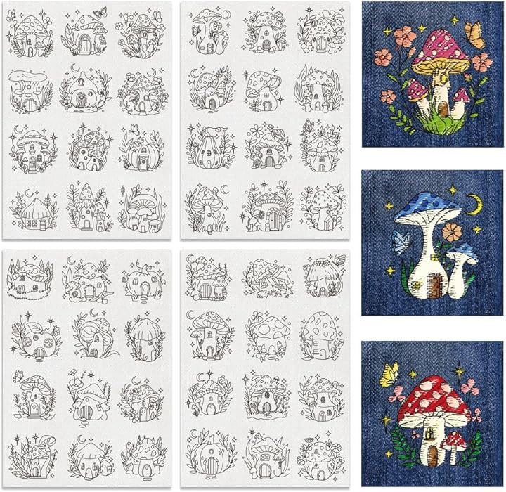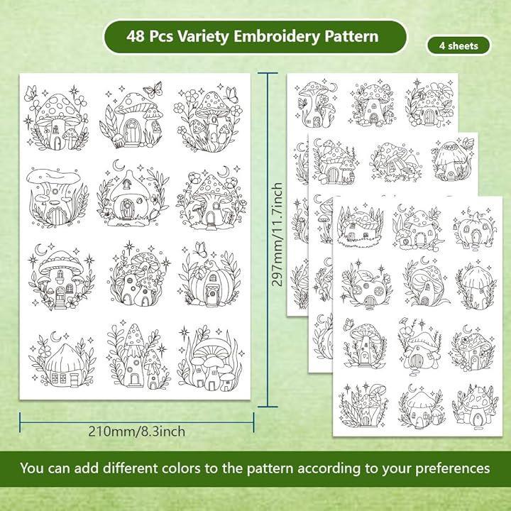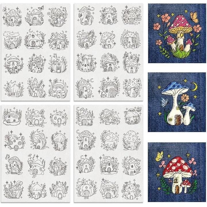 1セット4枚 刺繍用布 刺繍キット 48個モチーフ キノコハウス 不織布 水溶性 刺繍補助 刺しゅう クロスステッチ 手作り DIY刺繍工具 初心者