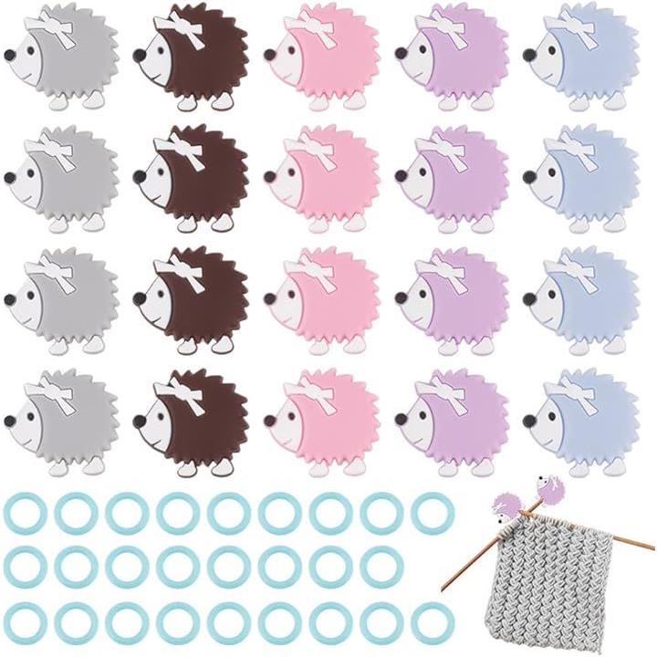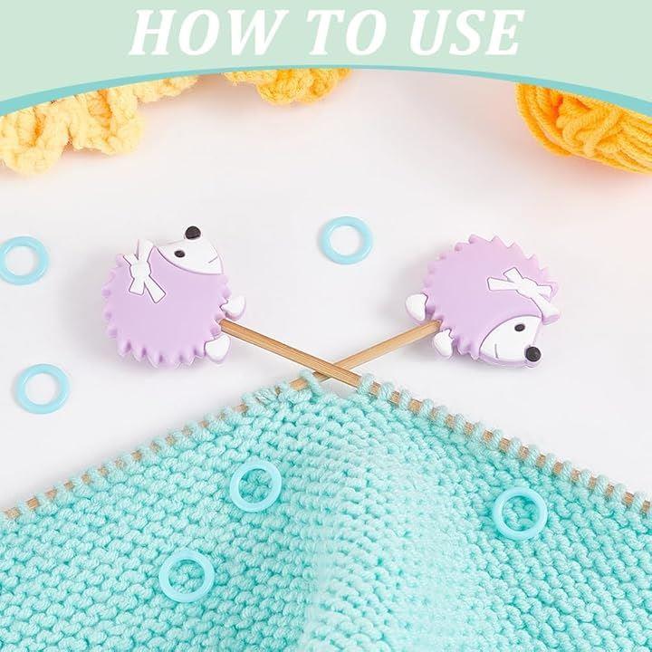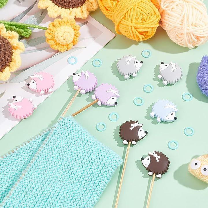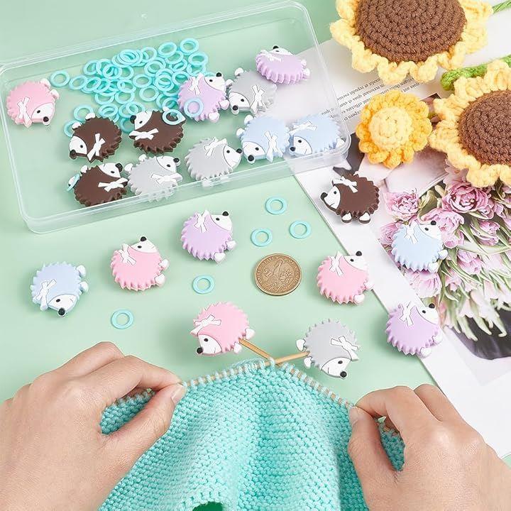 80点 編み針キャップ 円形段数マーカー 5色 シリコン棒針キャップ 編みステッチメーカーリング 編み針ストッパー 編み針先プロテクター 編み物ツール 収納ケース付き