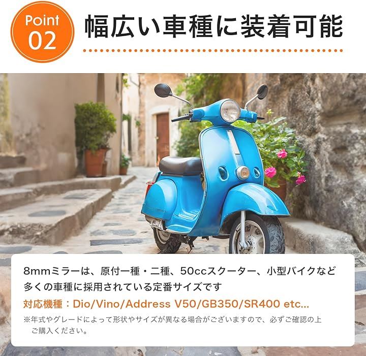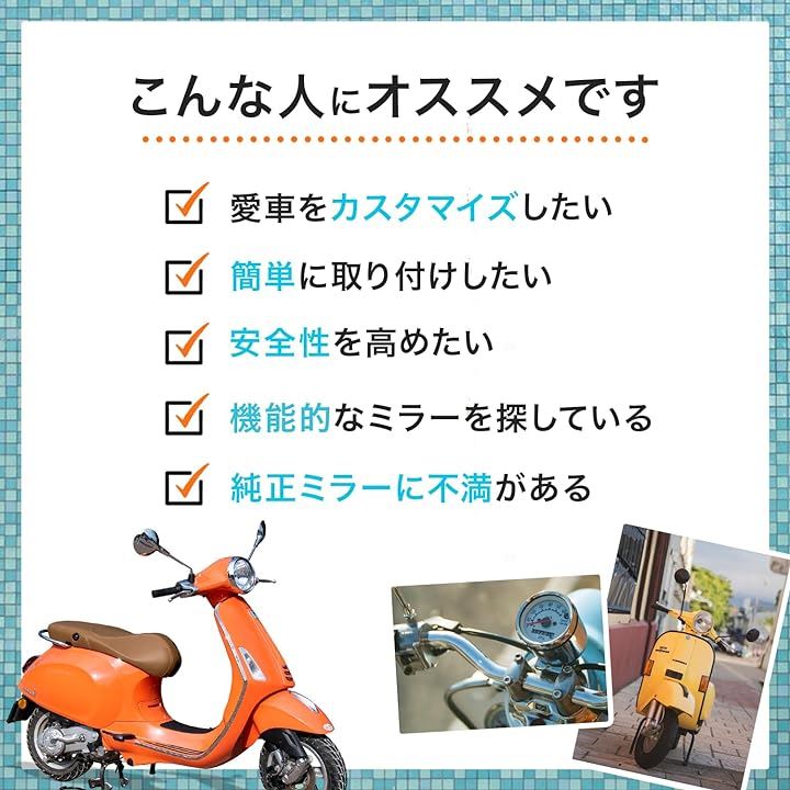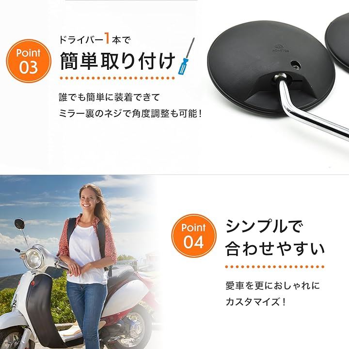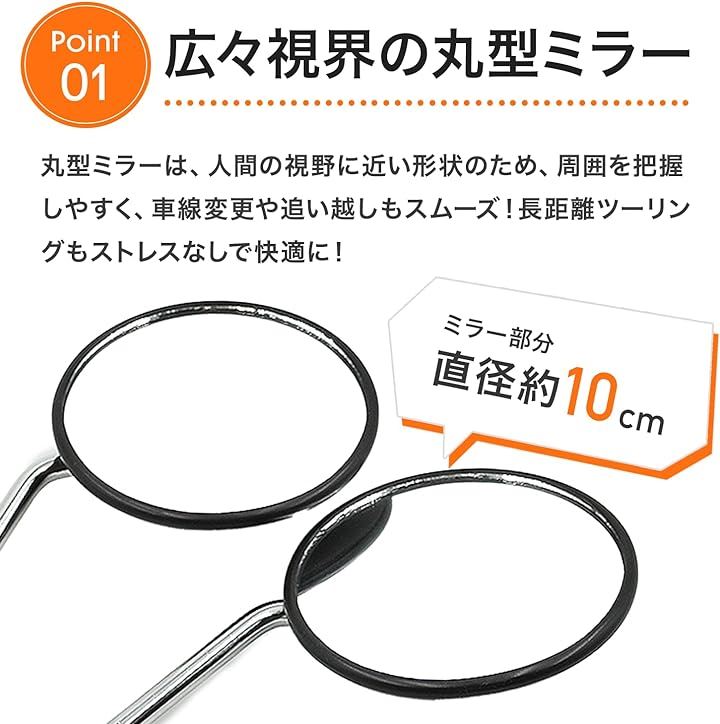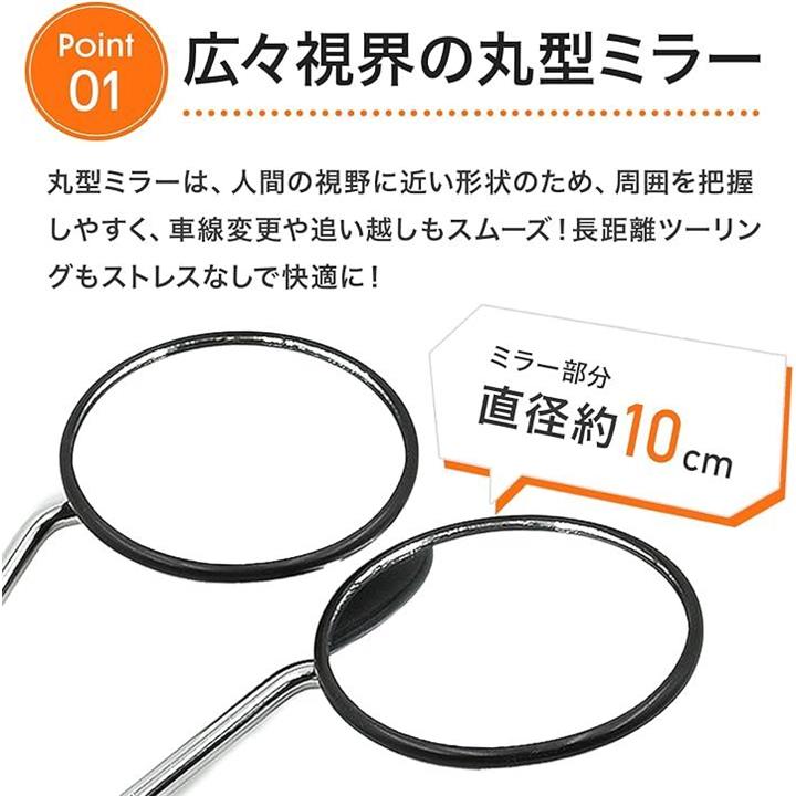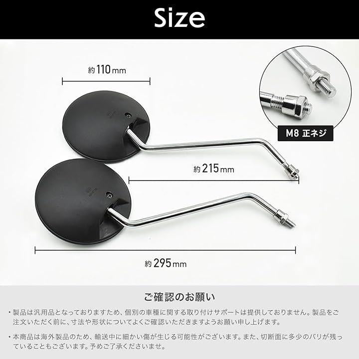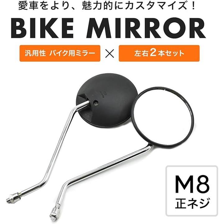 互換品 バイク ミラー 8mm 生ネジ 黒 丸型 円型 サイド 鏡 汎用 原付 スクーター ホンダ スズキ モンキー カブ ディオ バックミラー