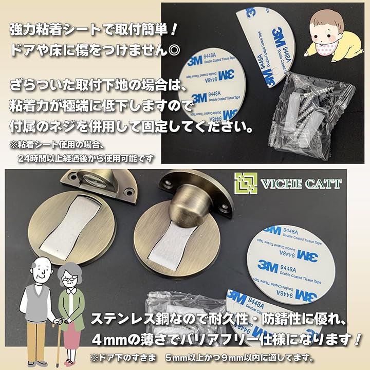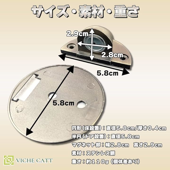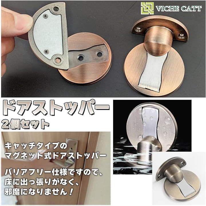 ドアストッパー マグネット 式 キャッチタイプ 室内 扉止め ステンレス製 2個セット