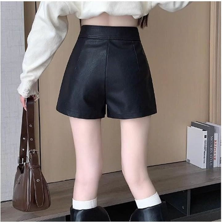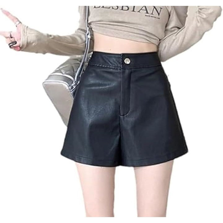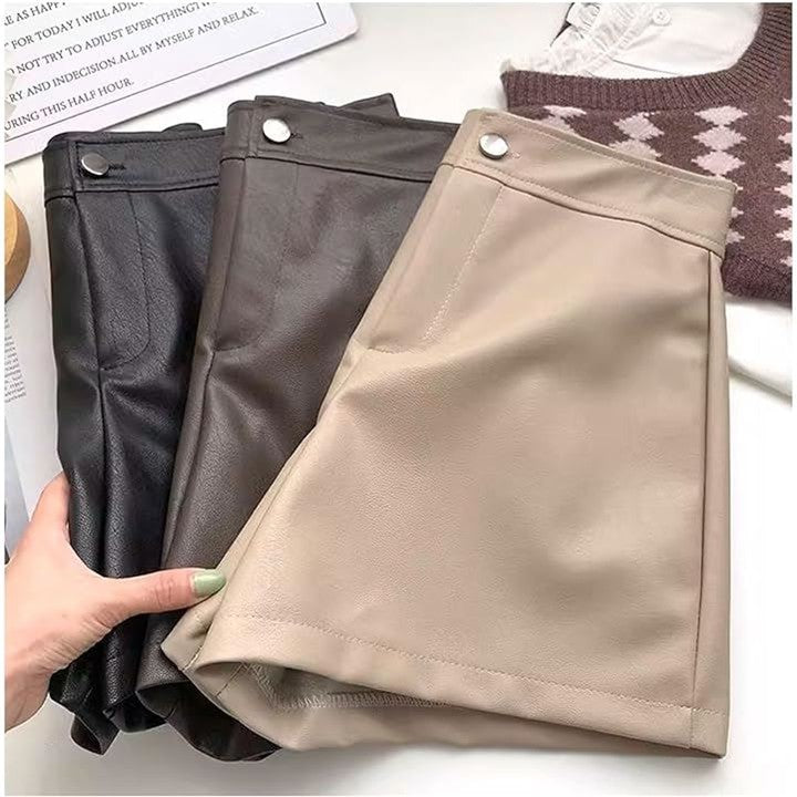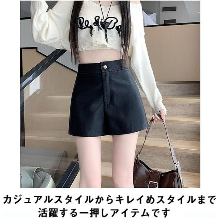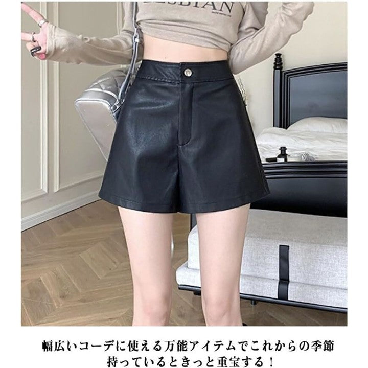 ショートパンツ フェイクレザー レディース 調 Aライン ハイウエスト ショーパン カジュアル シンプル キレイメ