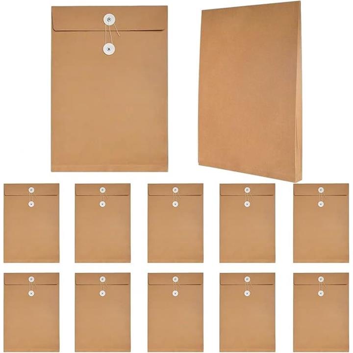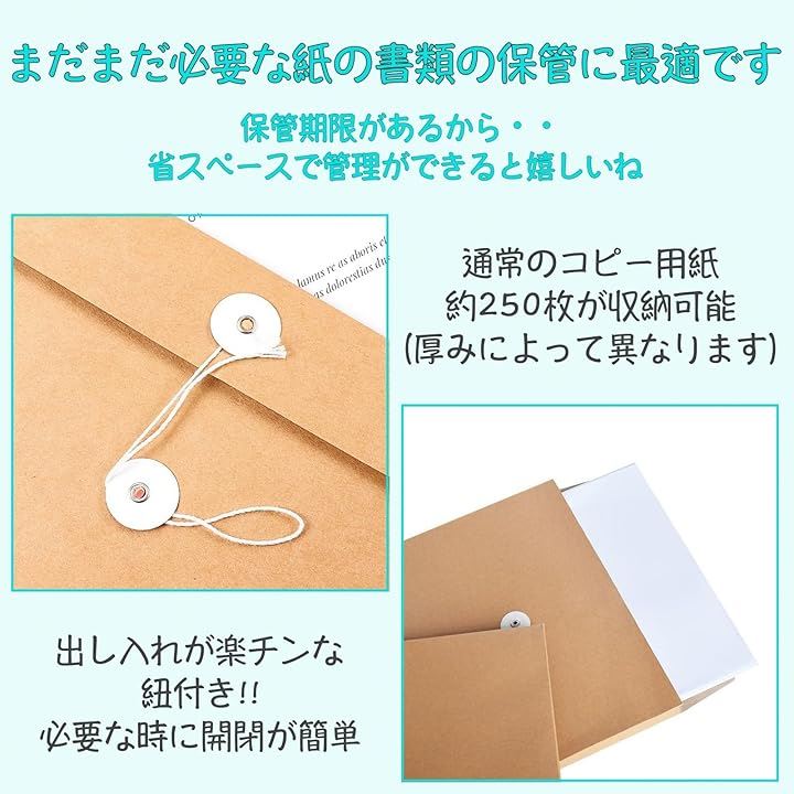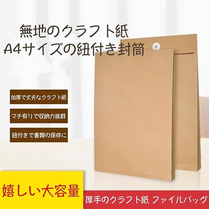 A4封筒 ファイル クラフト紙 紐付き封筒 書類入れ マチ付き 資料保管ケース 大容量 オフィス ビジネス 宅配便 保存袋