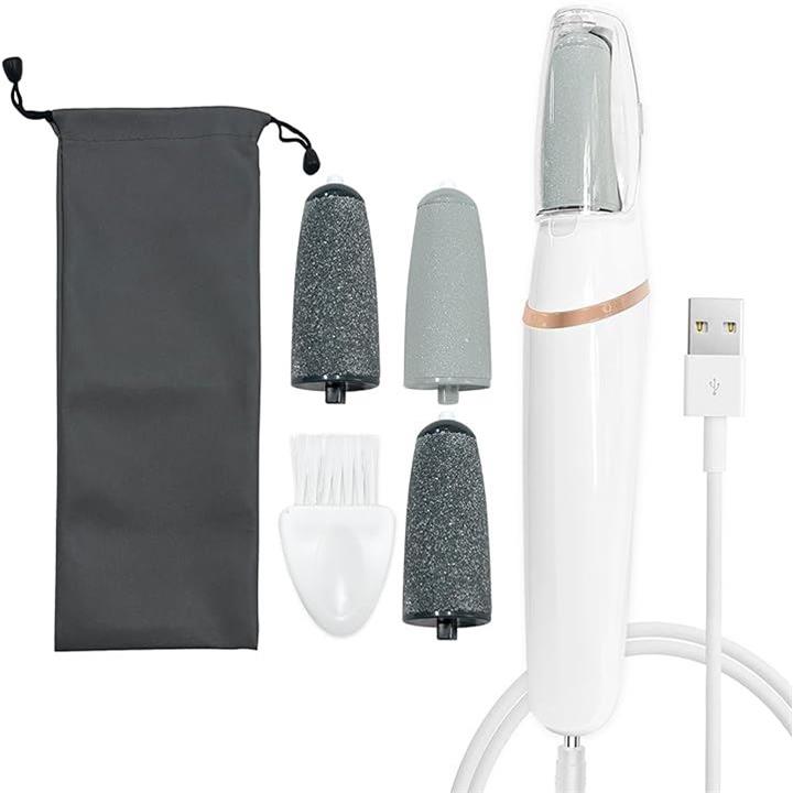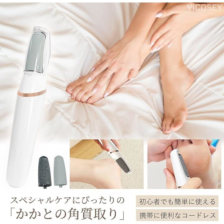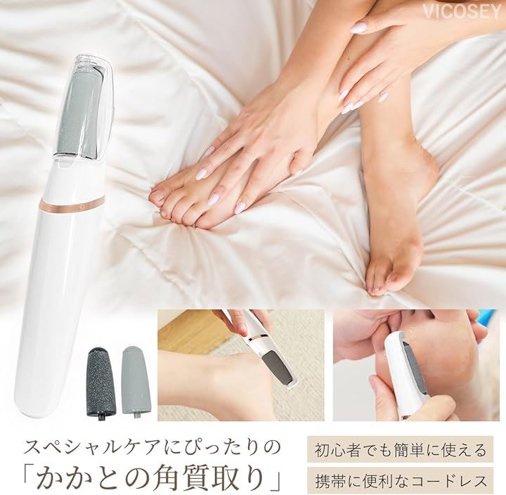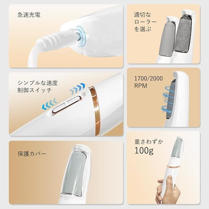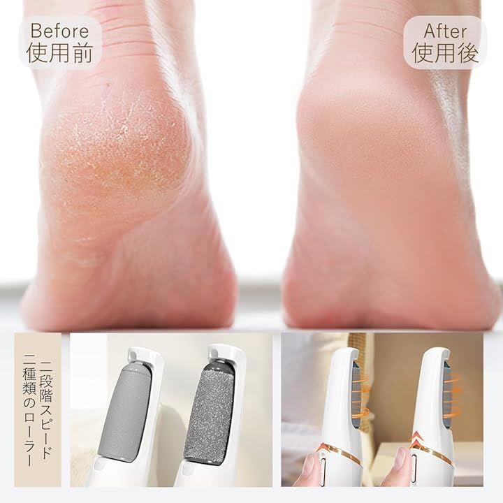 電動角質リムーバー かかと削り 足 角質取り 踵 足裏角質除去 強力な足裏ケア 電動ハードスキンリムーバー かかと自動処理 2種類のローラー 2段階スピード USB充電 LEDライト付き