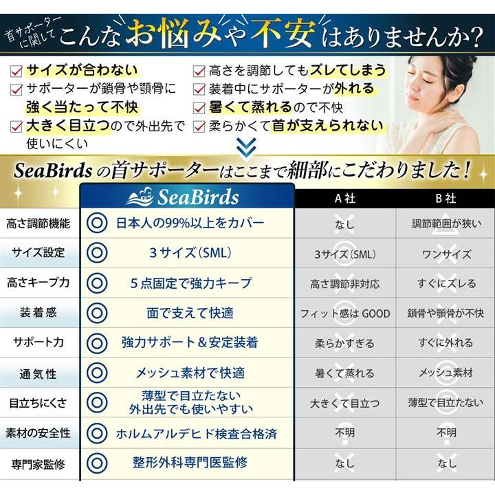 首 コルセット サポーター プレミアム「整形外科医監修」 頸椎 頚椎 カラー 「高さ調節式の決定版」 薄型 洗える 軽量 メッシュ 通気性 クッション SeaBirds |