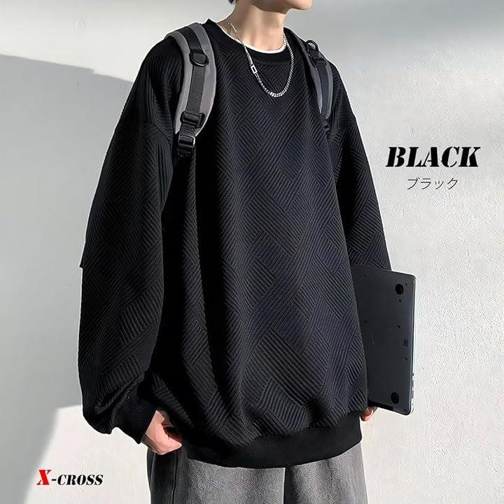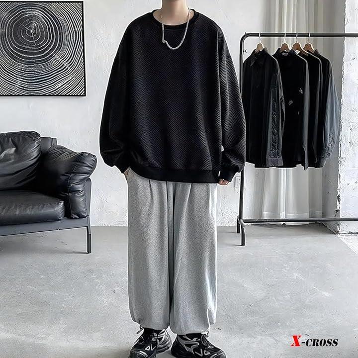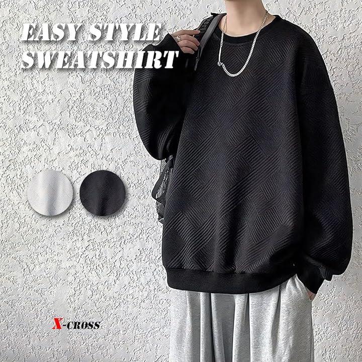 [X-cross] クロス ゆったり トレーナー メンズ ワッフル 大きいサイズ おしゃれ クルーネック 長袖 無地 大きい ビッグシルエット 薄手 アメカジ アウトドア カジュアル プルオーバー オーバーサイズ ストリート ファッション |
