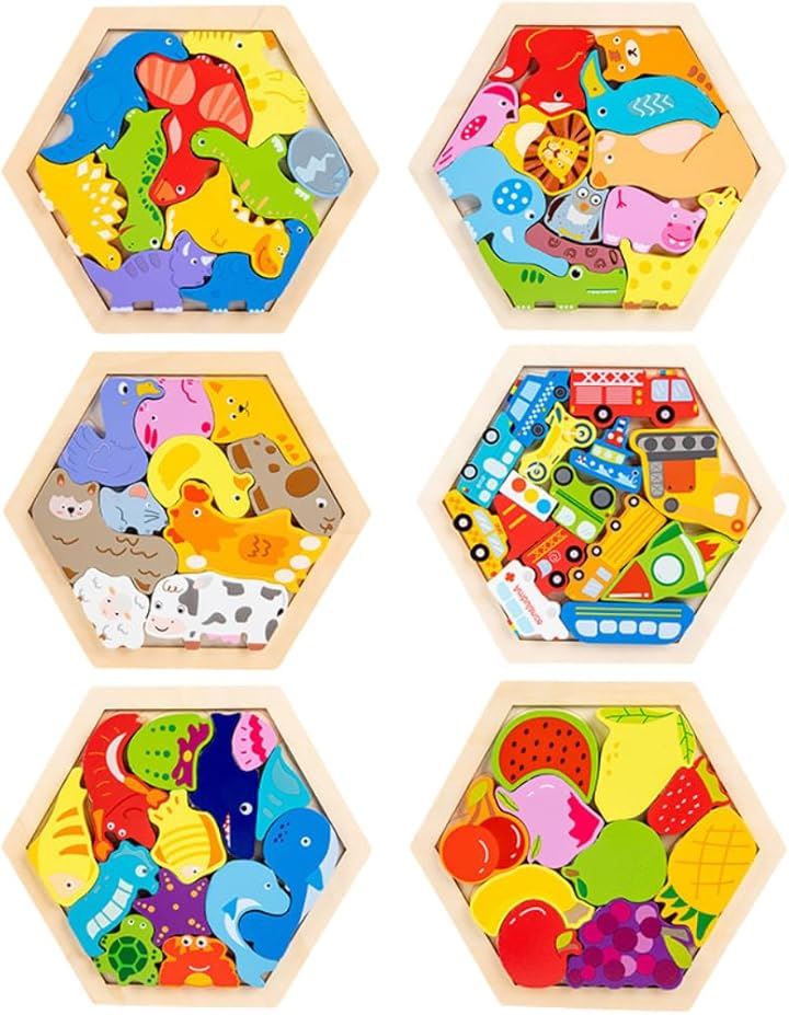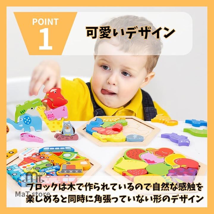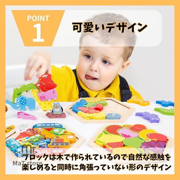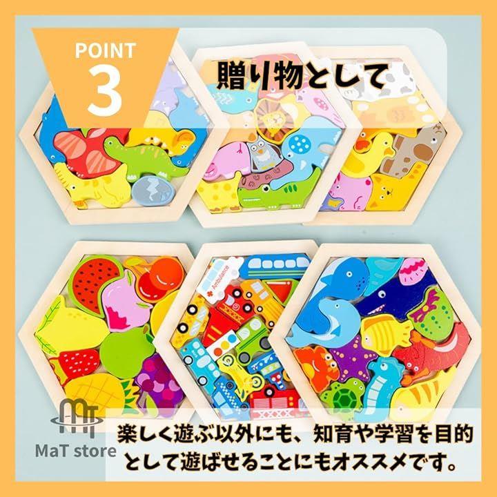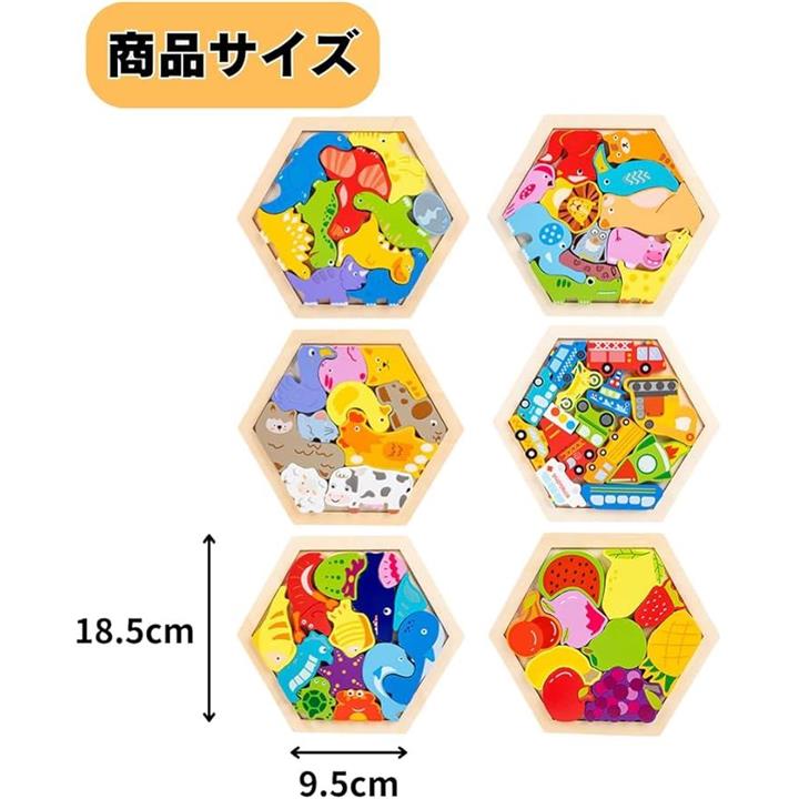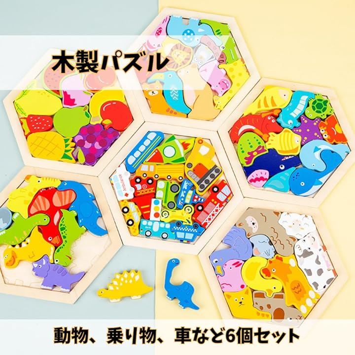 木製パズル 動物 乗り物 くだもの はめ込み 型 知恵 型合わせ 6個セット