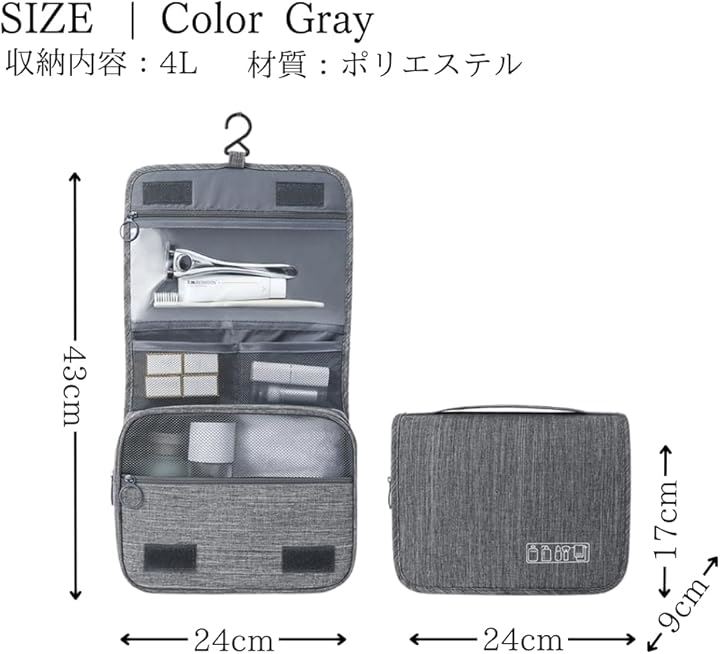旅行用ポーチ トラベルポーチ 吊り下げ 化粧ポーチ メイクポーチ 小物入れ 防水 4L