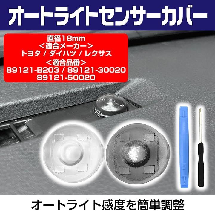 互換品オートライト 互換 センサー カバー トヨタ ダイハツ レクサス オートライト感度を調整 汎用 自動調光 18mm コンライト 半透明 工具付き