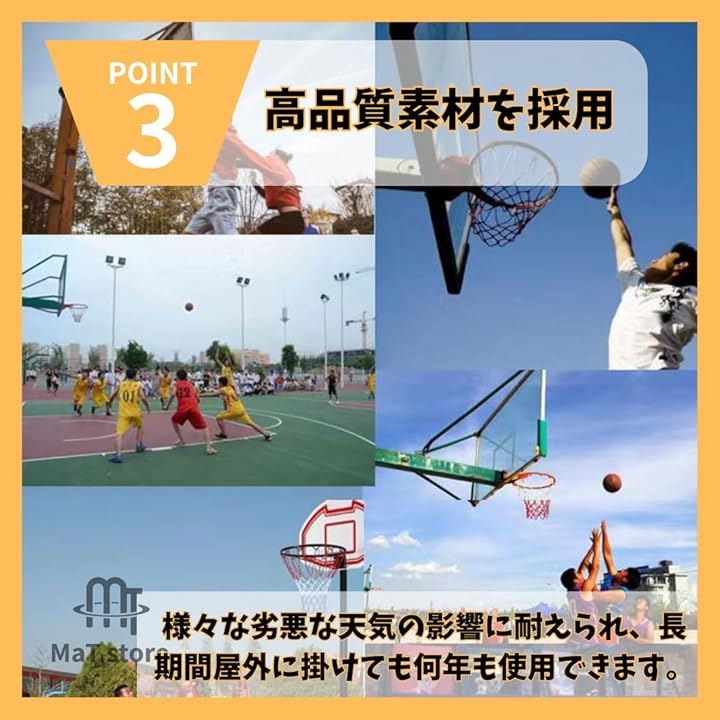 バスケットゴール ゴールネット リング 太め 室内 屋外 12ループ 簡単取付 2枚セット