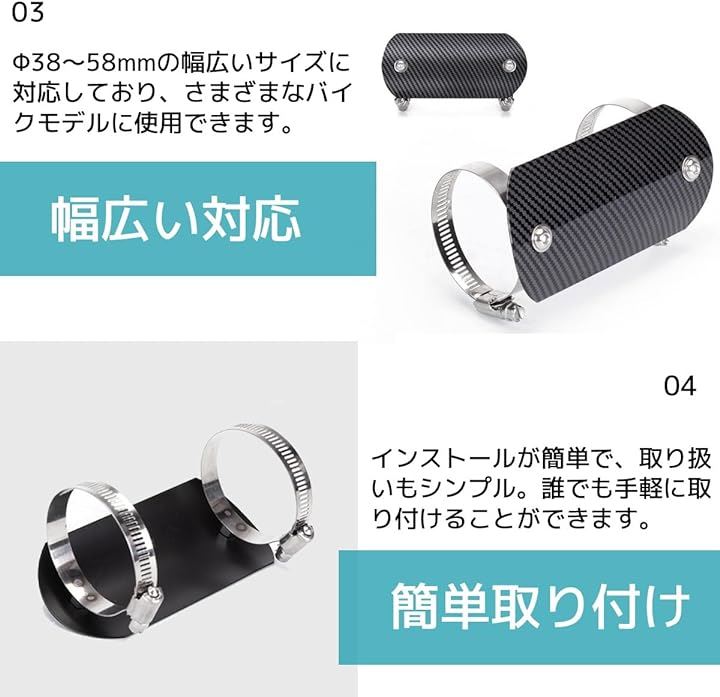バイク マフラー エキゾースト カバー プロテクター マフラーガード ヒートガード オートバイ さび隠し Φ38~58mm 対応