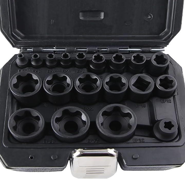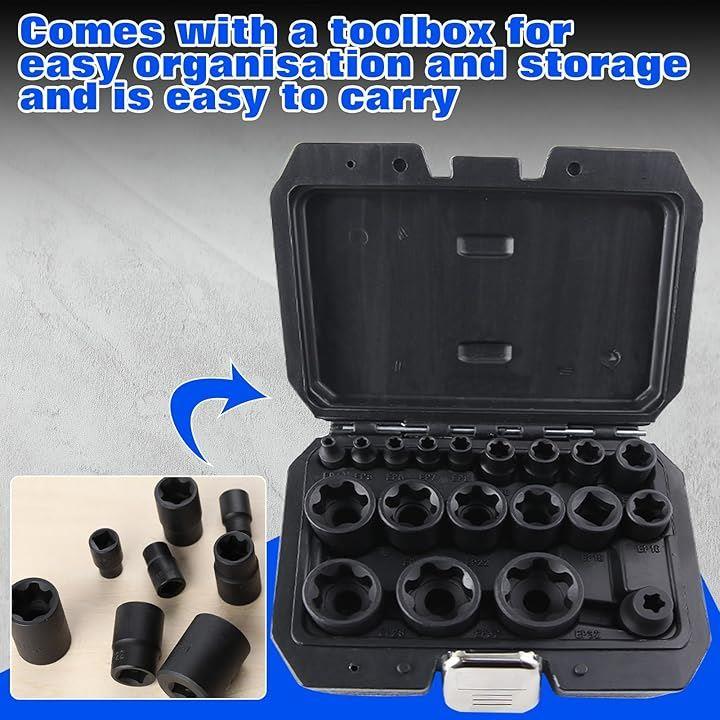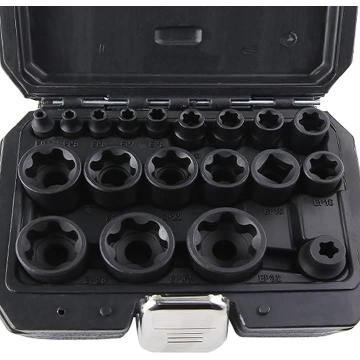 外部トルクソケットセット 外付けトルクソケットセット 星型レンチ E型ソケット 花型 スターソケットセット 1/4 3/8 1/2インチ 収納ボックス付き 19点