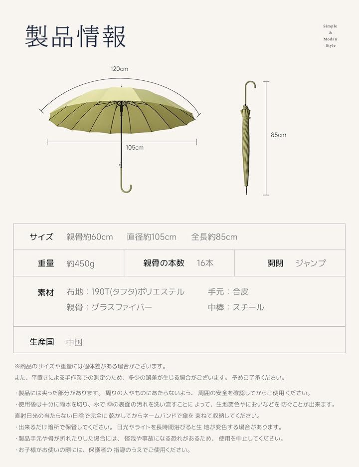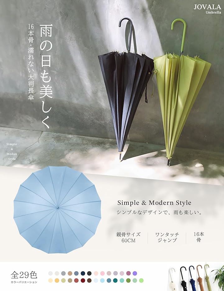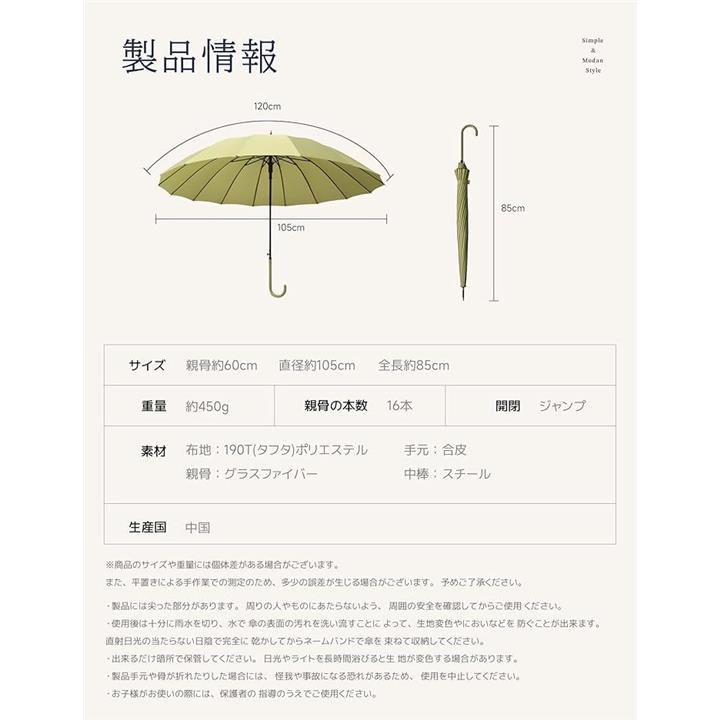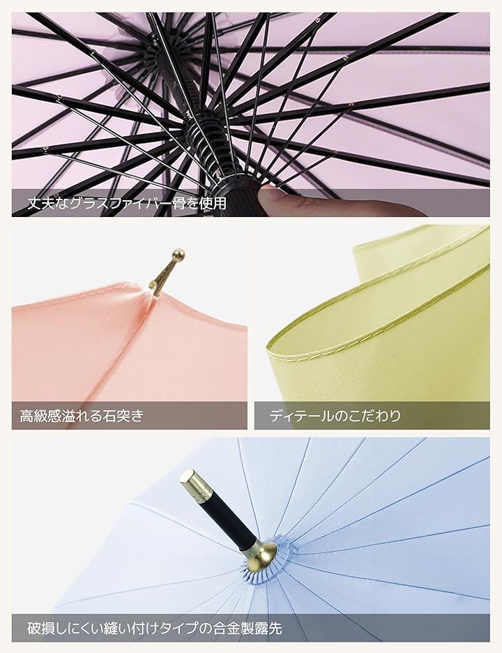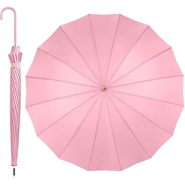 傘 長傘 レディース 16本骨 親骨60cm 雨傘 日傘 ジャンプ式 大きめ おしゃれ ワンタッチ 婦人傘 紳士傘 ピンク