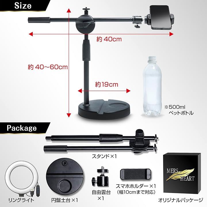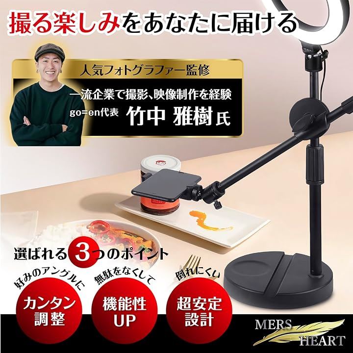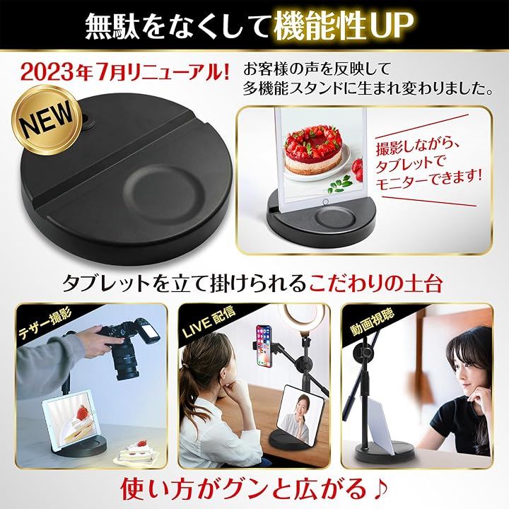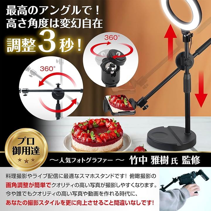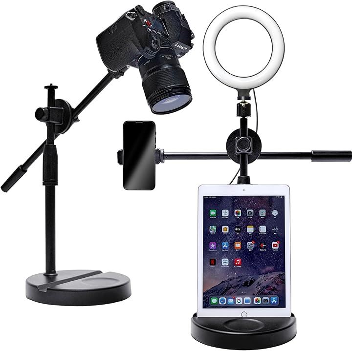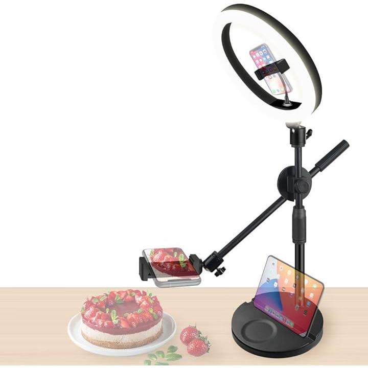 スマホスタンド リングライト 撮影 自撮りライト タブレット タブレットライブ配信 卓上 影なし 3色モード10段調光 角度 高さ調節可能