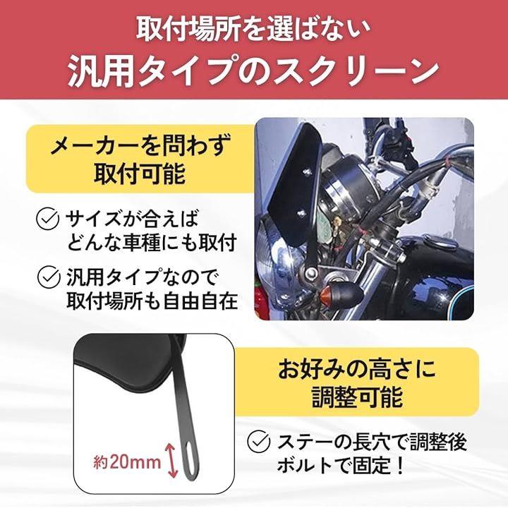 互換品 ウインドシールド バイク スクリーン 風防 汎用 メーターバイザー カウル 保護 プロテクター ボード オートバイ 原付 スクーター 金具付き 黒