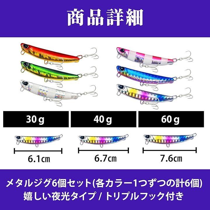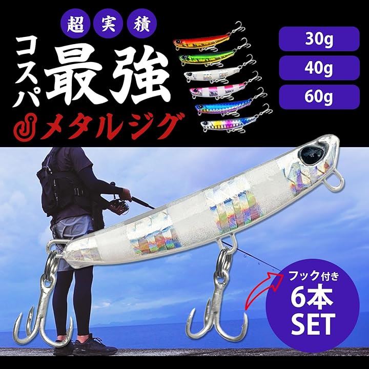 メタルジグ 6個セット ルアー ミノー ジギング リアルジグ フック付 青物 釣具 ショアジギング 海釣り メバル ジグヘッド