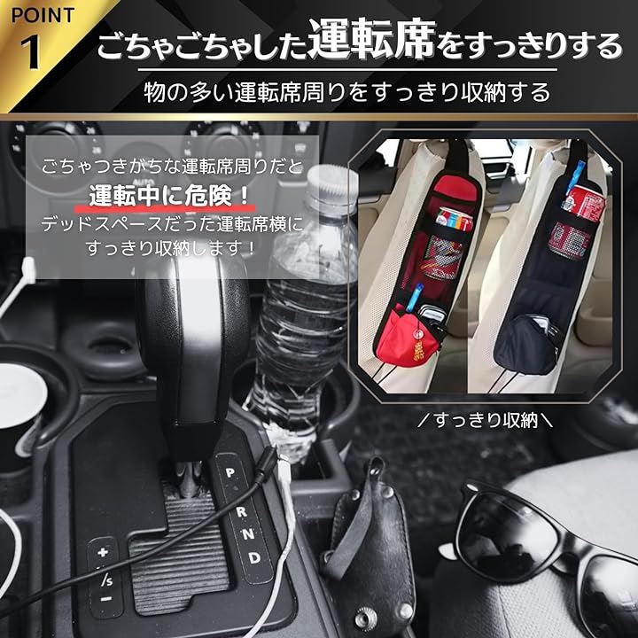 互換品 車 収納 吊り下げ シートサイド ポケット 運転席 助手席 汎用 車用 小物入れ ネット サイド収納 ボックス 薄型 コンパクト すき間 便利グッズ