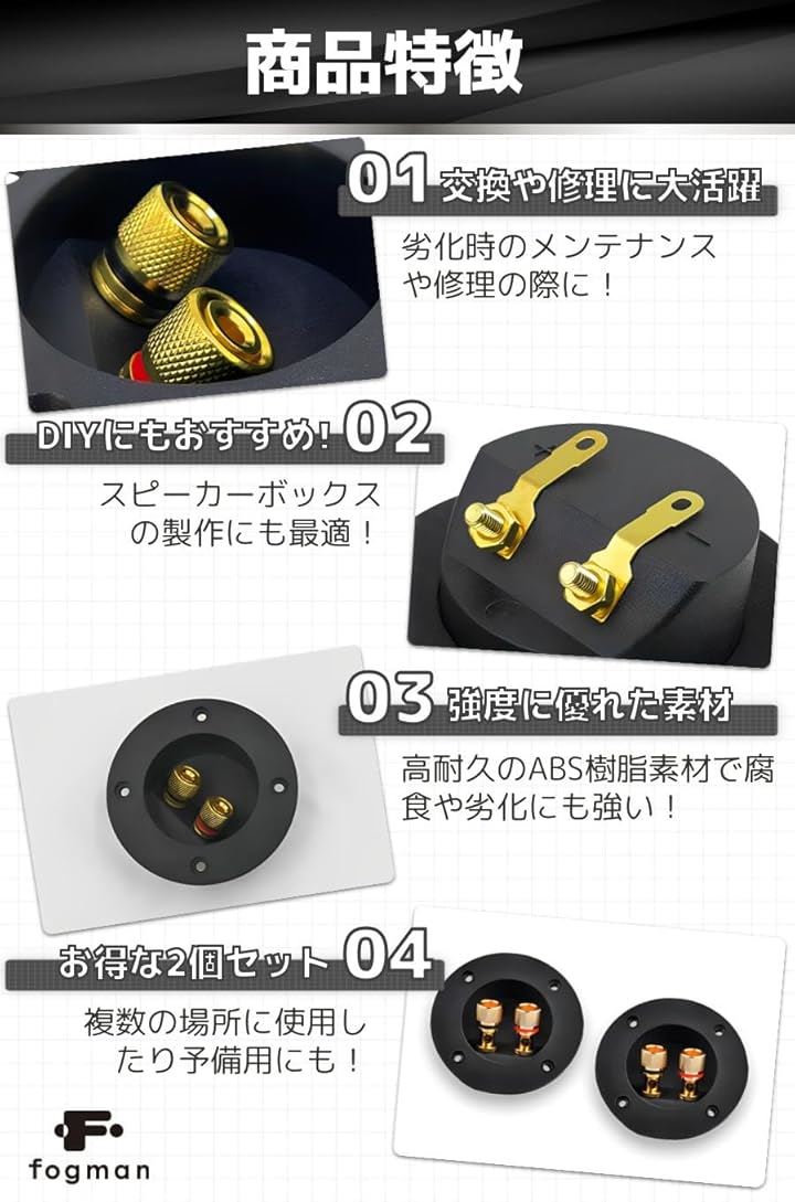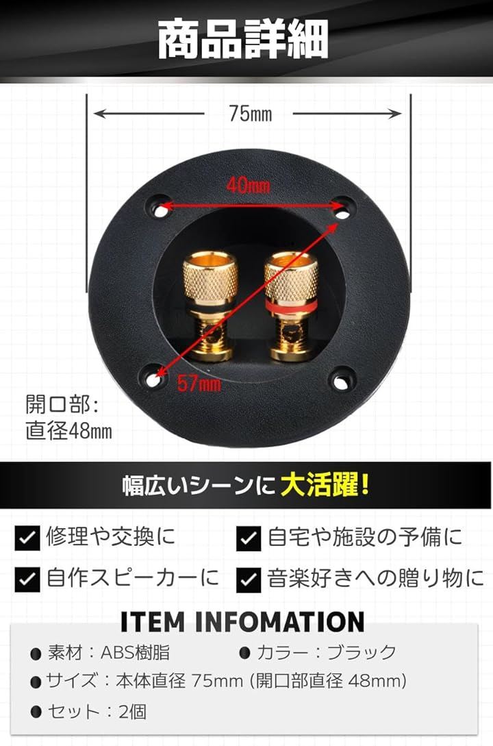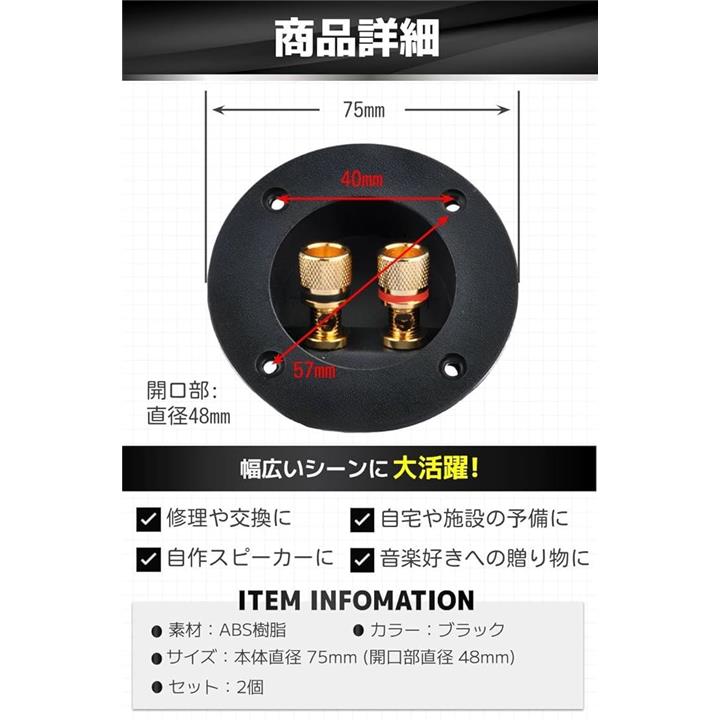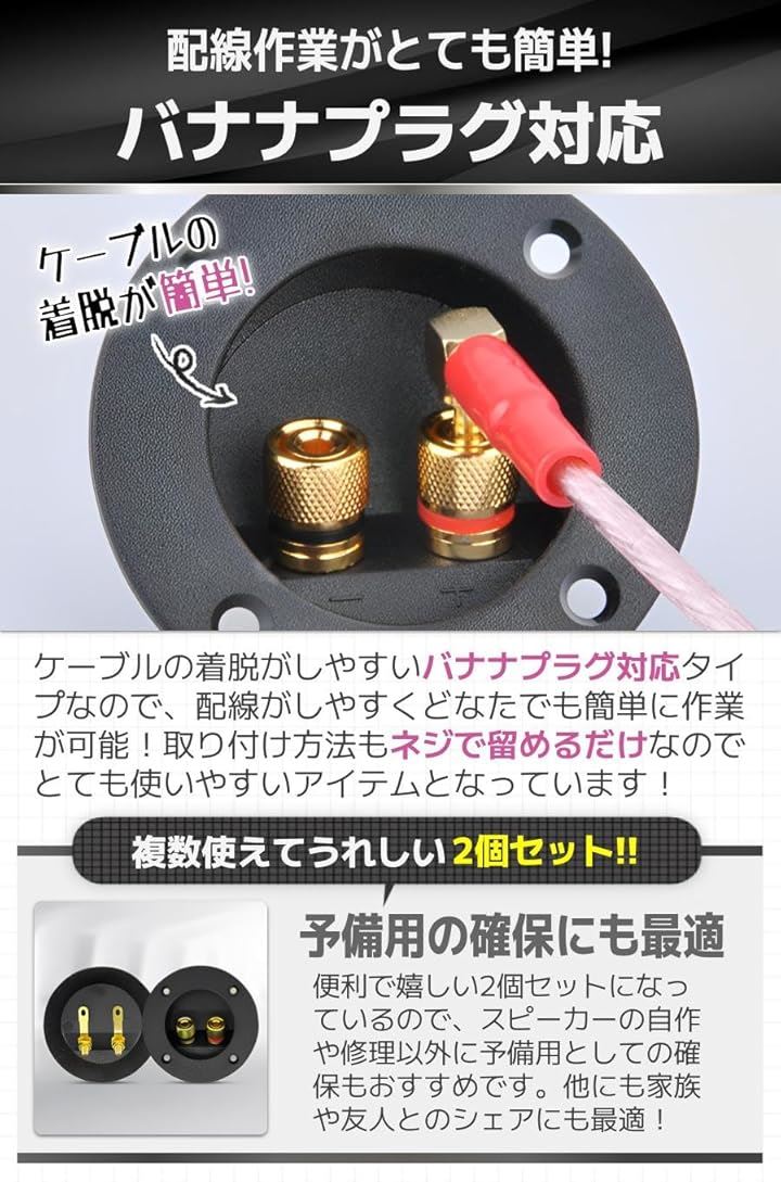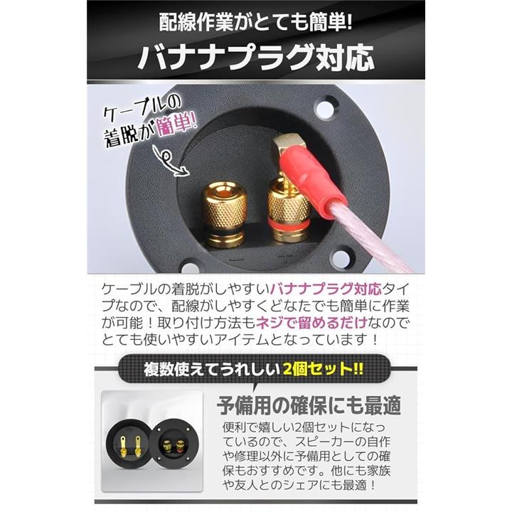 互換品 ターミナルボックス スピーカー バナナプラグ対応 丸型 スピーカーボックス 2個セット