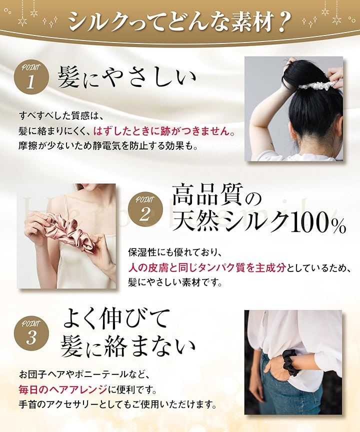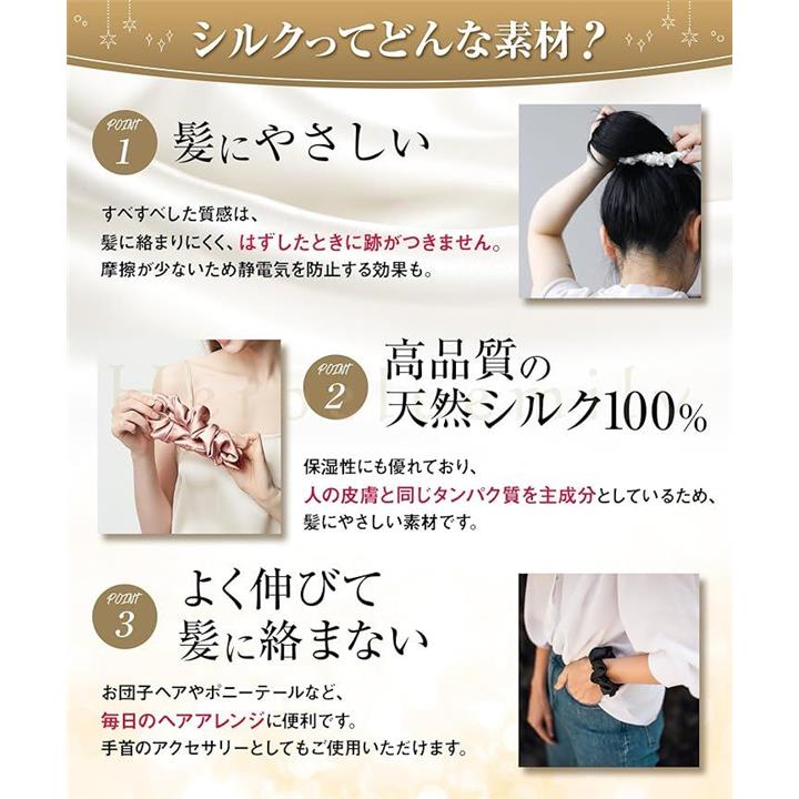 シュシュ シルク100% ヘアゴム 髪にやさしく跡がつかない 母の日 髪ゴム おしゃれ 大人 1個セット