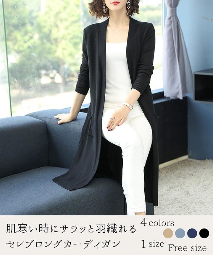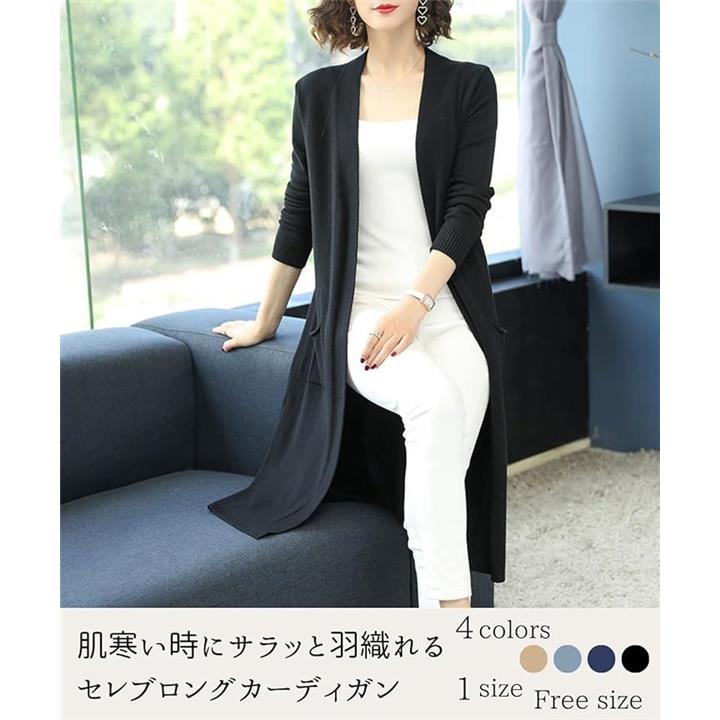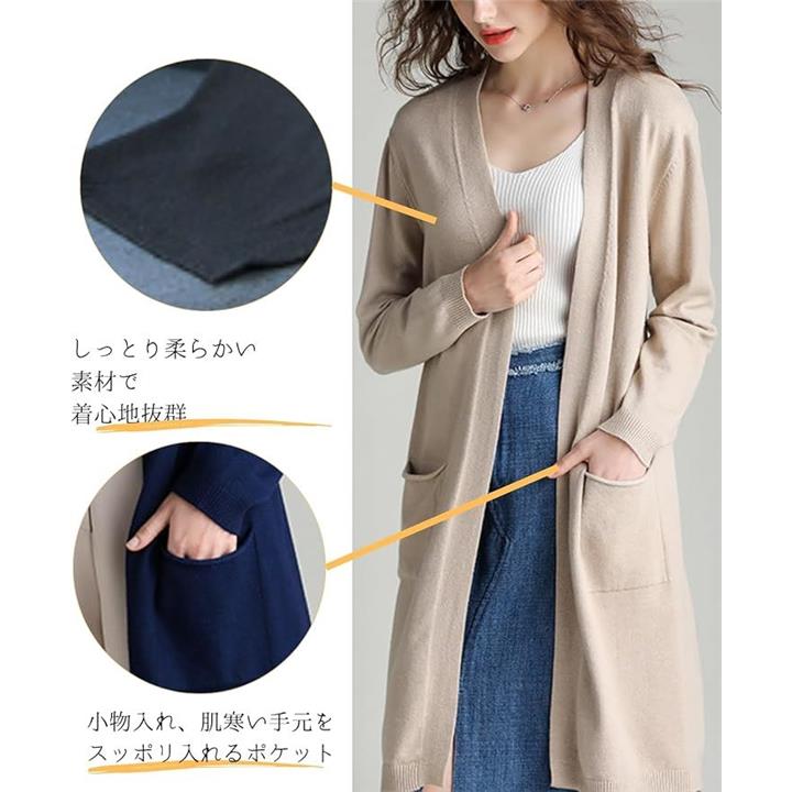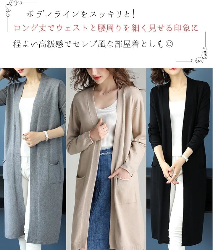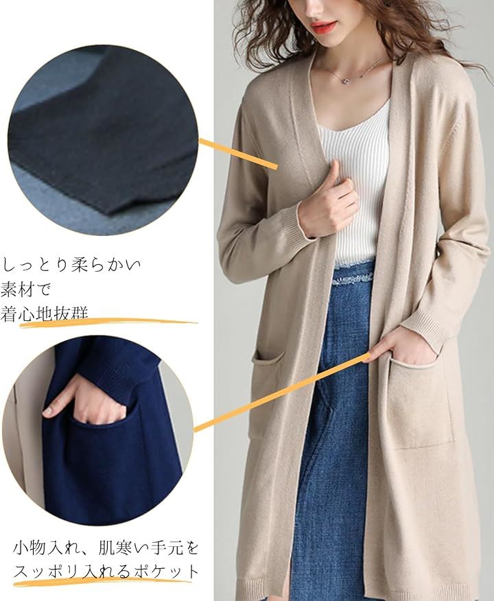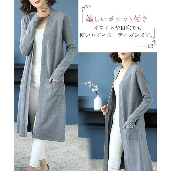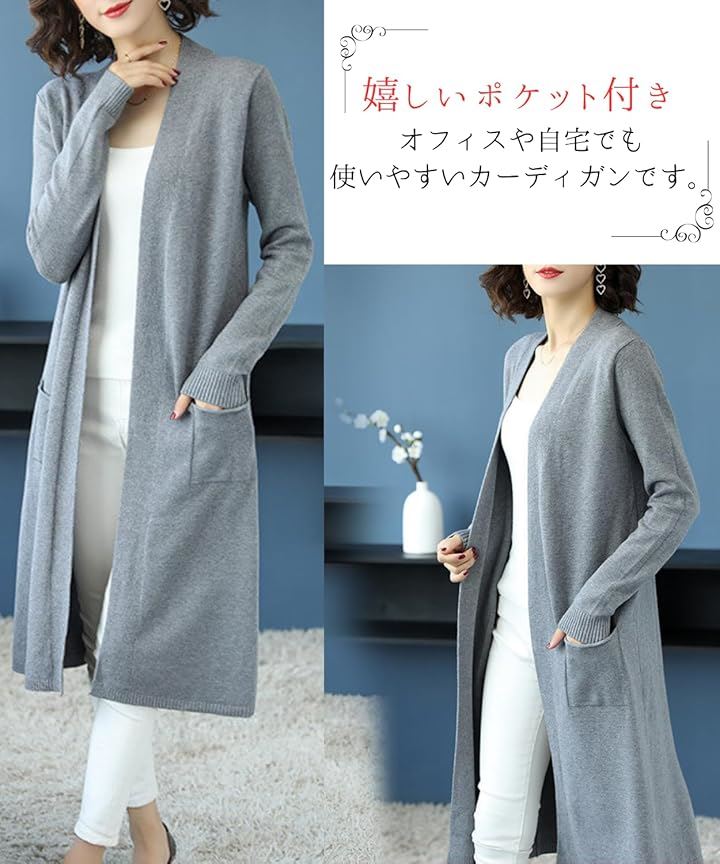 エレガントx気軽さ ロングカーディガン レディース 薄手 ニット ロング丈 ポケット 無地 大きいサイズ ゆったり 春 秋 冬 春秋 秋冬 春服