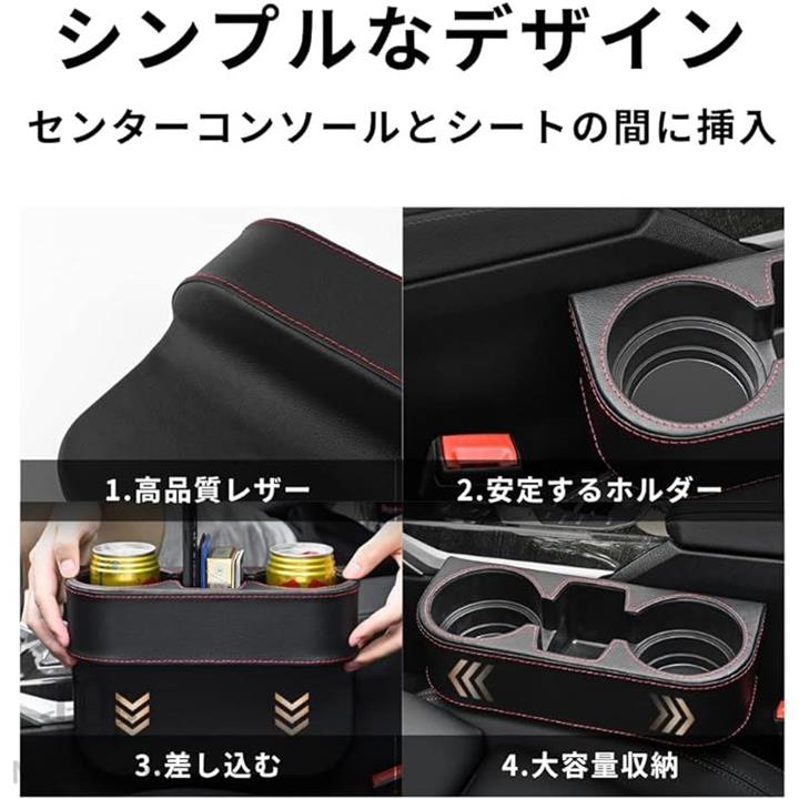 互換品車用サイド収納ボックス カップホルダー シートポケット 隙間 差し込みタイプ