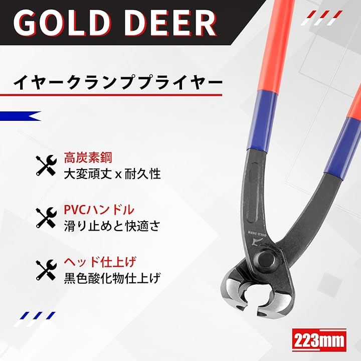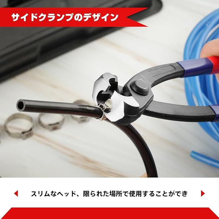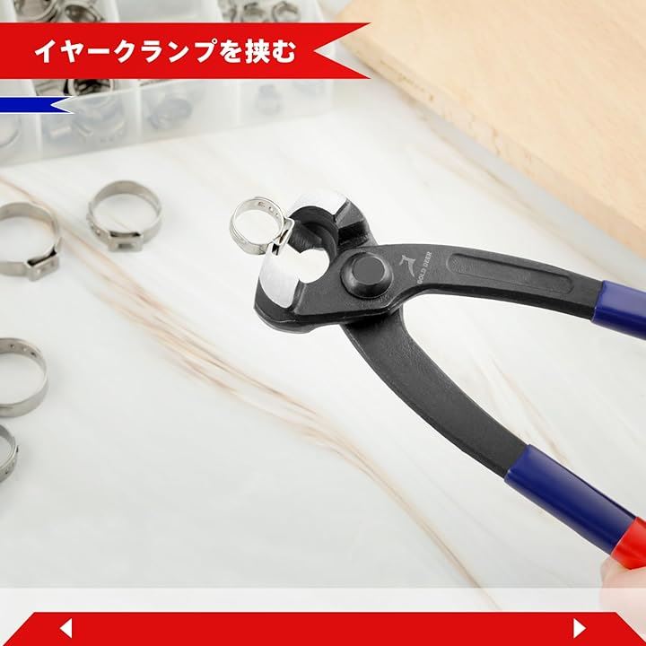 イヤークランププライヤー クランプホースバンドプライヤー ホースバンド用プライヤー 2方向 サイド刃付 穴付き カシメ用 イヤーホースバンド 外す工具 耳付きホースクランプ クランプ作業 パイプホース 固定 自動車 道具 ツール