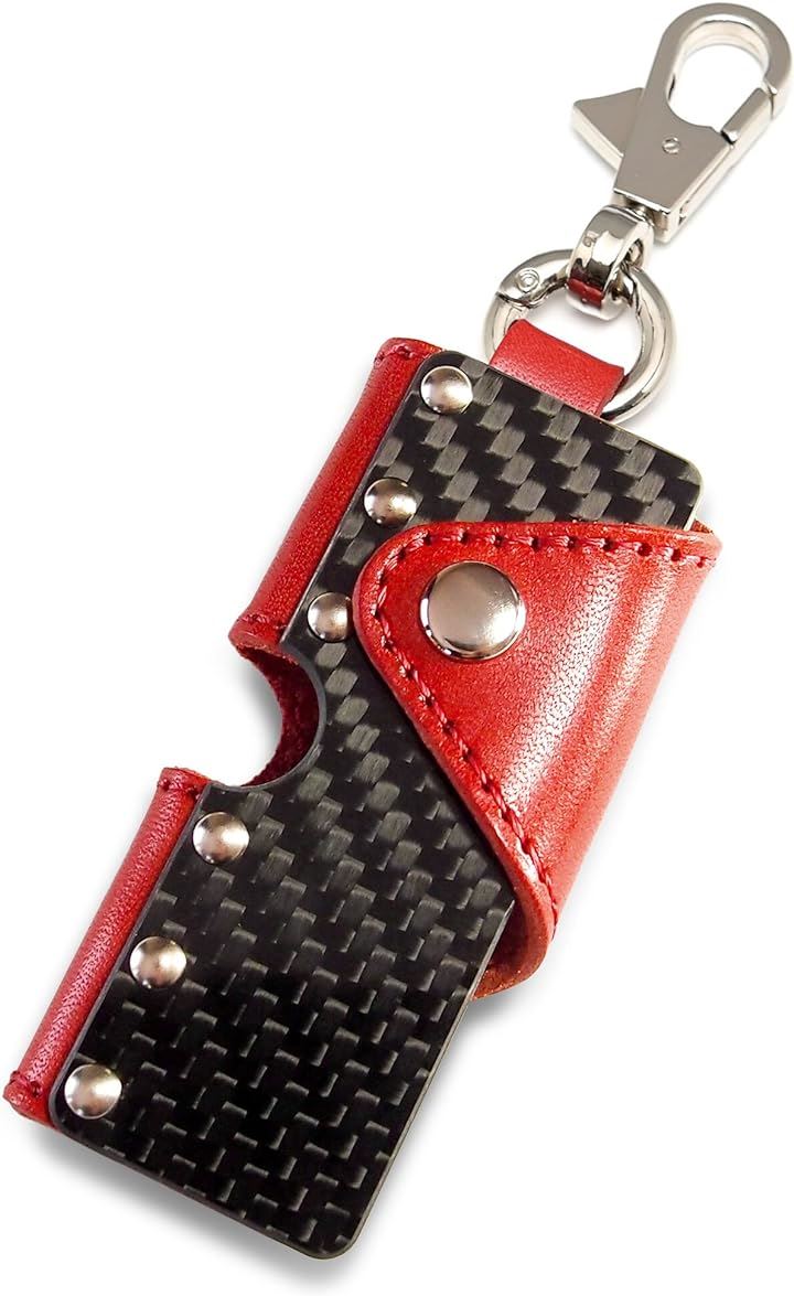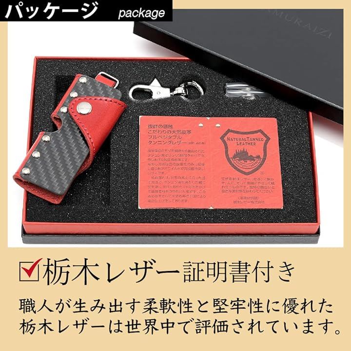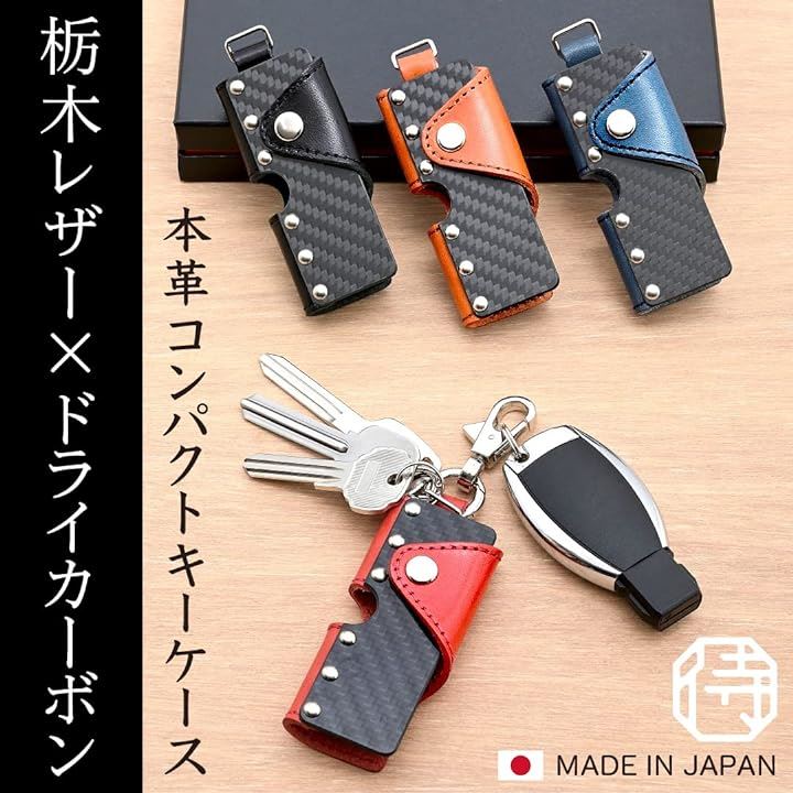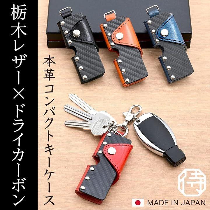 キーケース メンズ コンパクト 栃木レザー カーボン カラビナ付き 本革 車 バイク