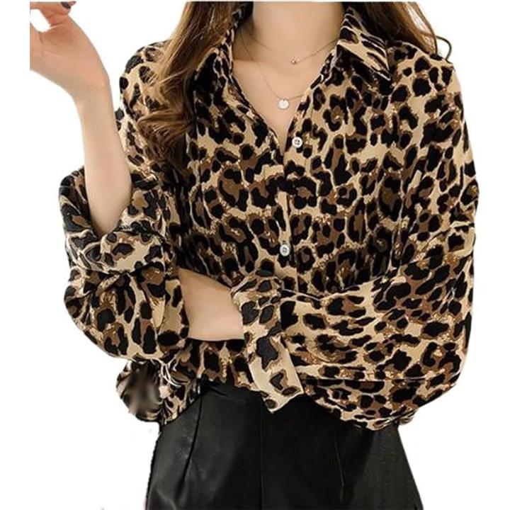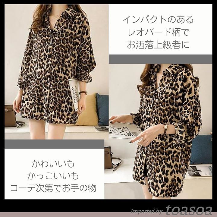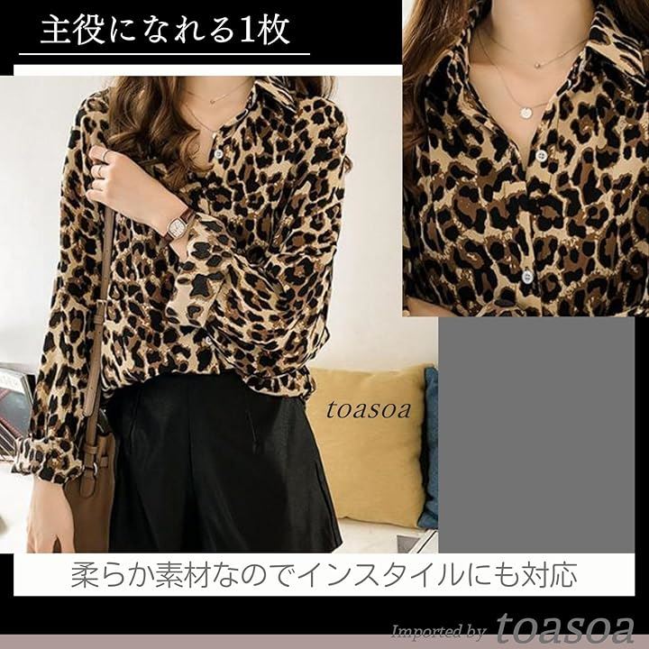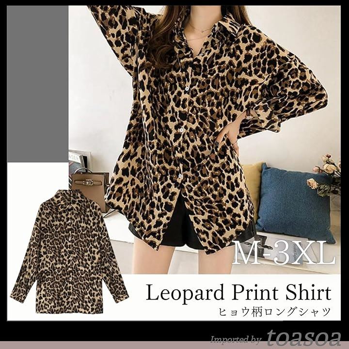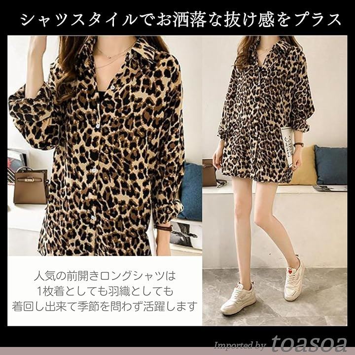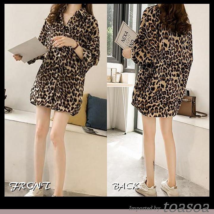 ヒョウ柄 シャツ レディース 長袖 ブラウス ロング おしゃれ カジュアル 薄手 柄物