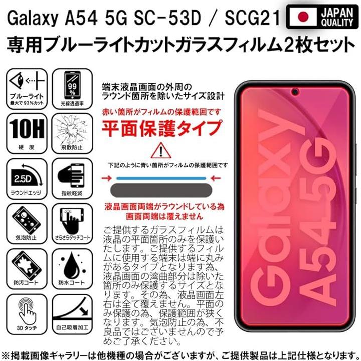 2枚セット最新強化モデル フィルム Galaxy A54 5G ギャラクシー / docomo SC-53D au SCG21 用 ガラスフィルム ブルーライトカット93%
