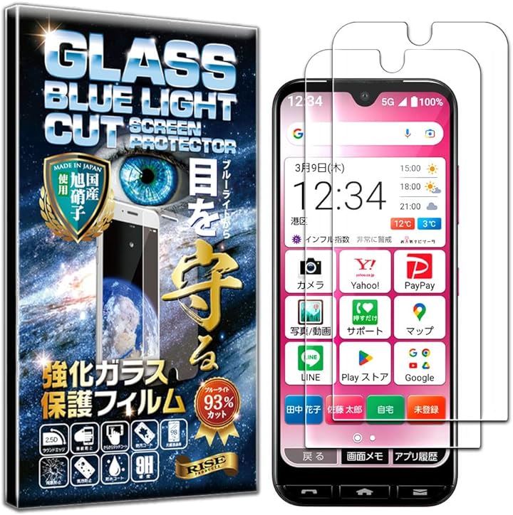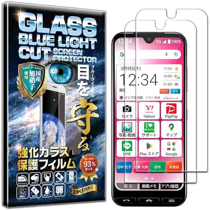 2枚セットフィルム かんたんスマホ 3 A205KC 用 ガラスフィルム ブルーライトカット 93% 保護フィルム 強化 高透過 高光沢 日本製 旭硝子