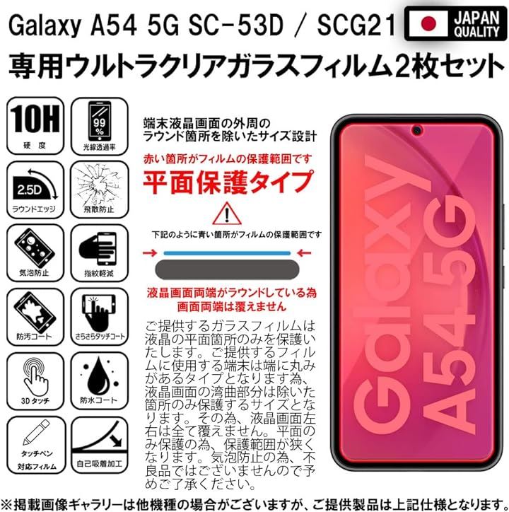 改良指紋認証対応版2枚セットフィルム Galaxy A54 5G ギャラクシー / docomo SC-53D au SCG21 ガラスフィルム 保護フィルム 強化 高透過