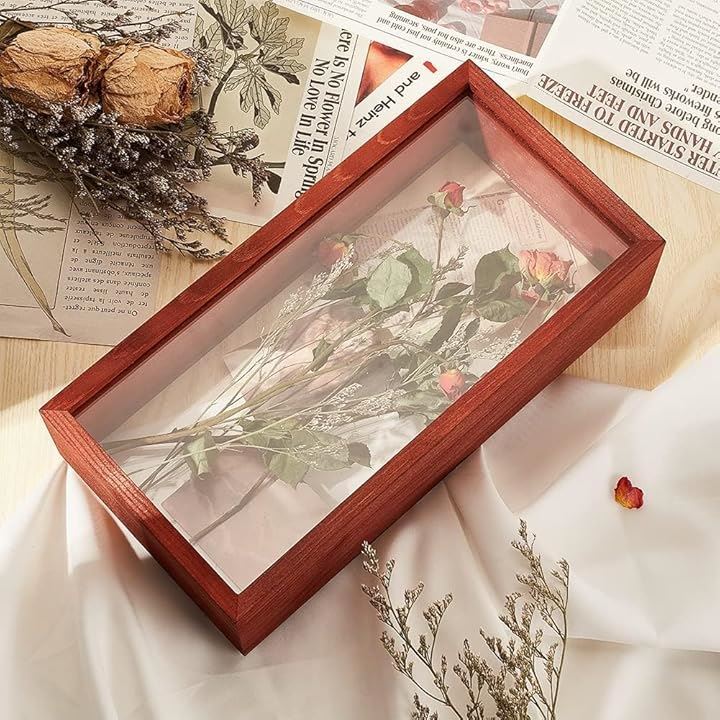 木製フォトフレーム 額縁 長方形 写真立て 立体フレーム 中空 ボックスフレーム お祝い 結婚祝い 退職祝い 記念品 メダル 植物標本 ドライフラワー