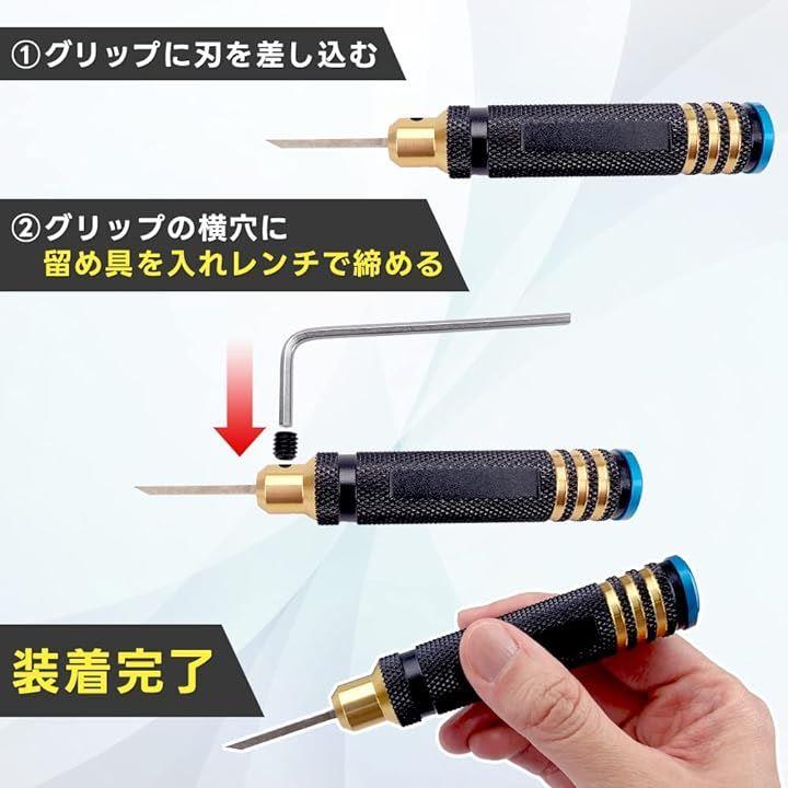 タガネ 7種ブレード グリップ付き マルチサイズ 筋彫り ライン引き 工具 0.1~2.0mm