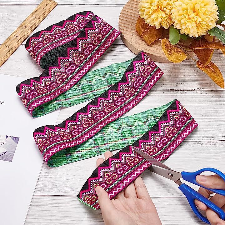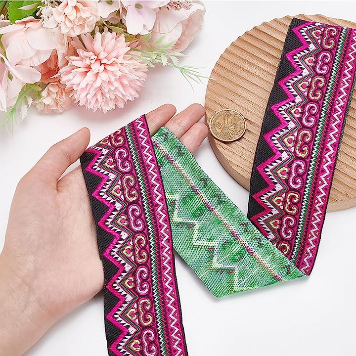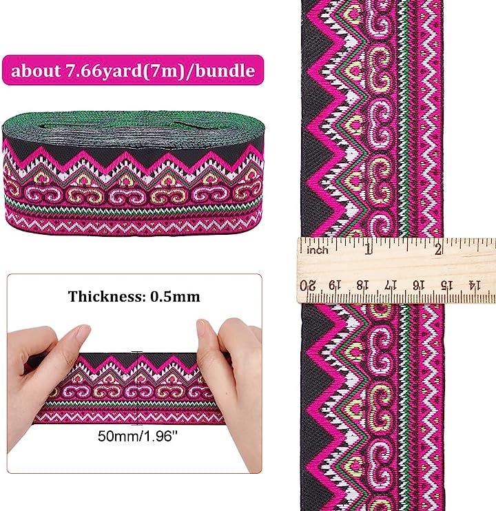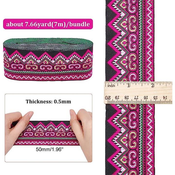 2色 5cm ジャカードリボントリム 7m エスニックスタイル 刺繍 ポリエステル ヴィンテージ リボン織布